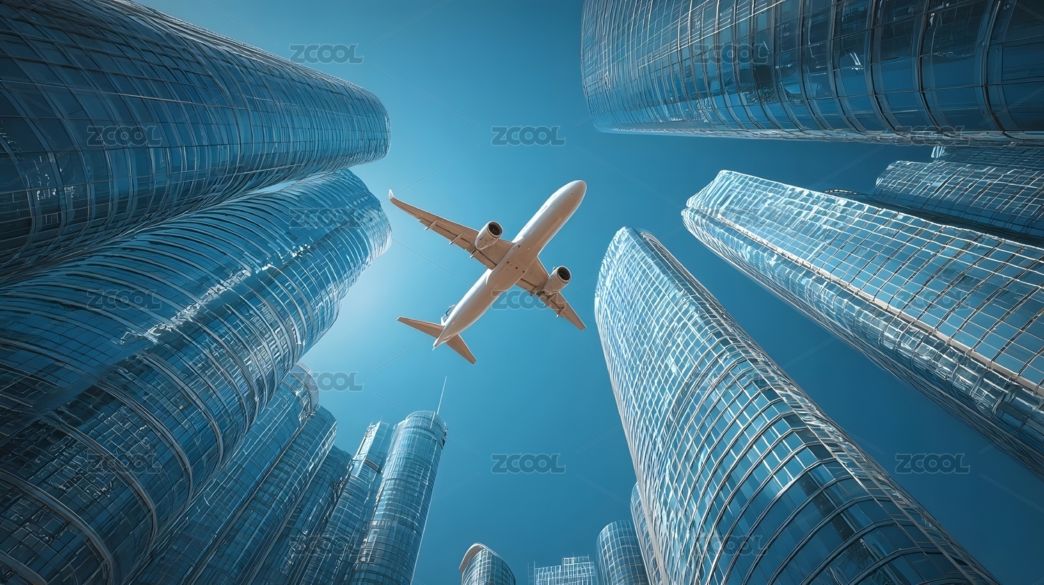 飞机穿梭摩天楼