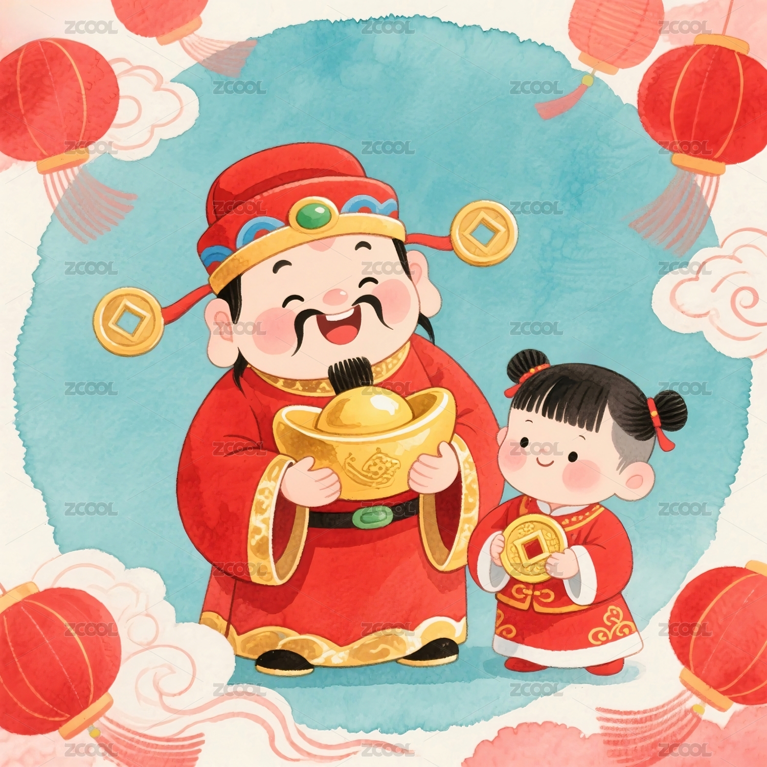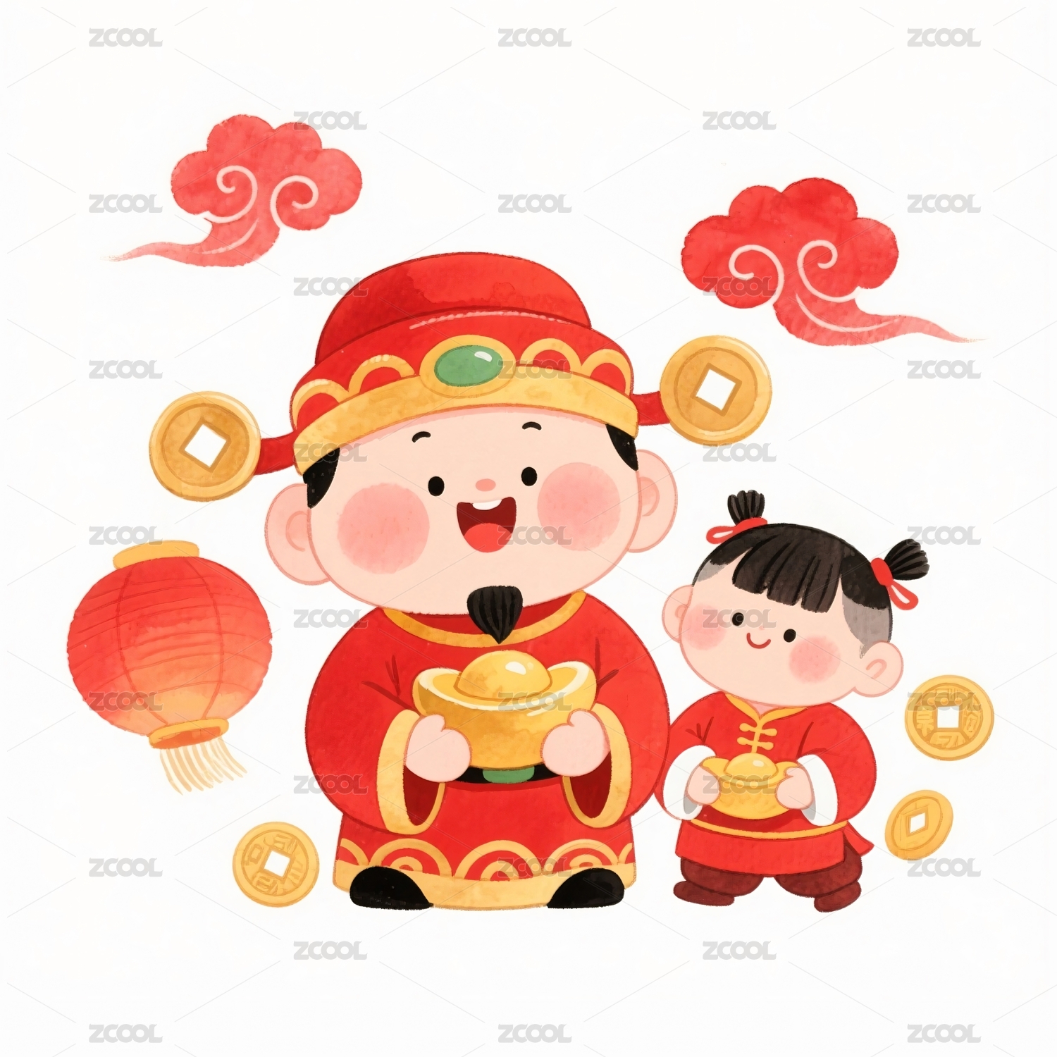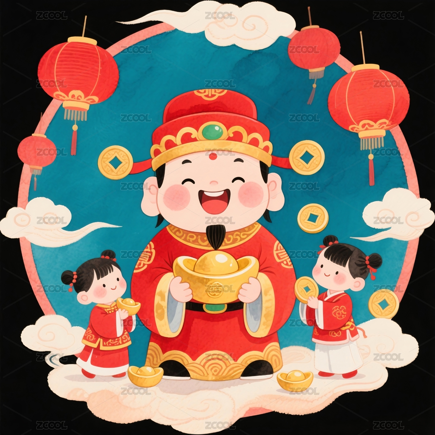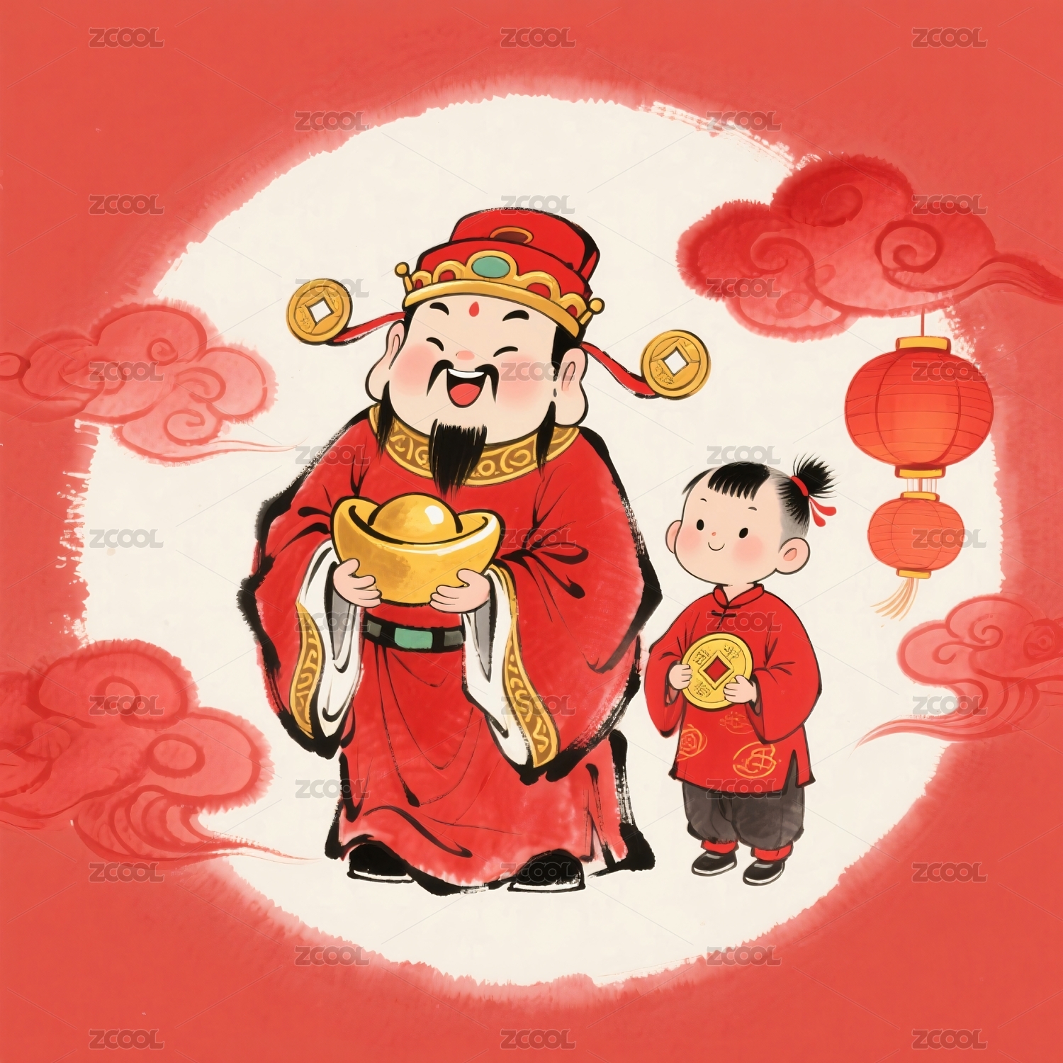 财神,墨镜,福气,吉祥,喜庆,红色,财富,快乐,神仙,人物