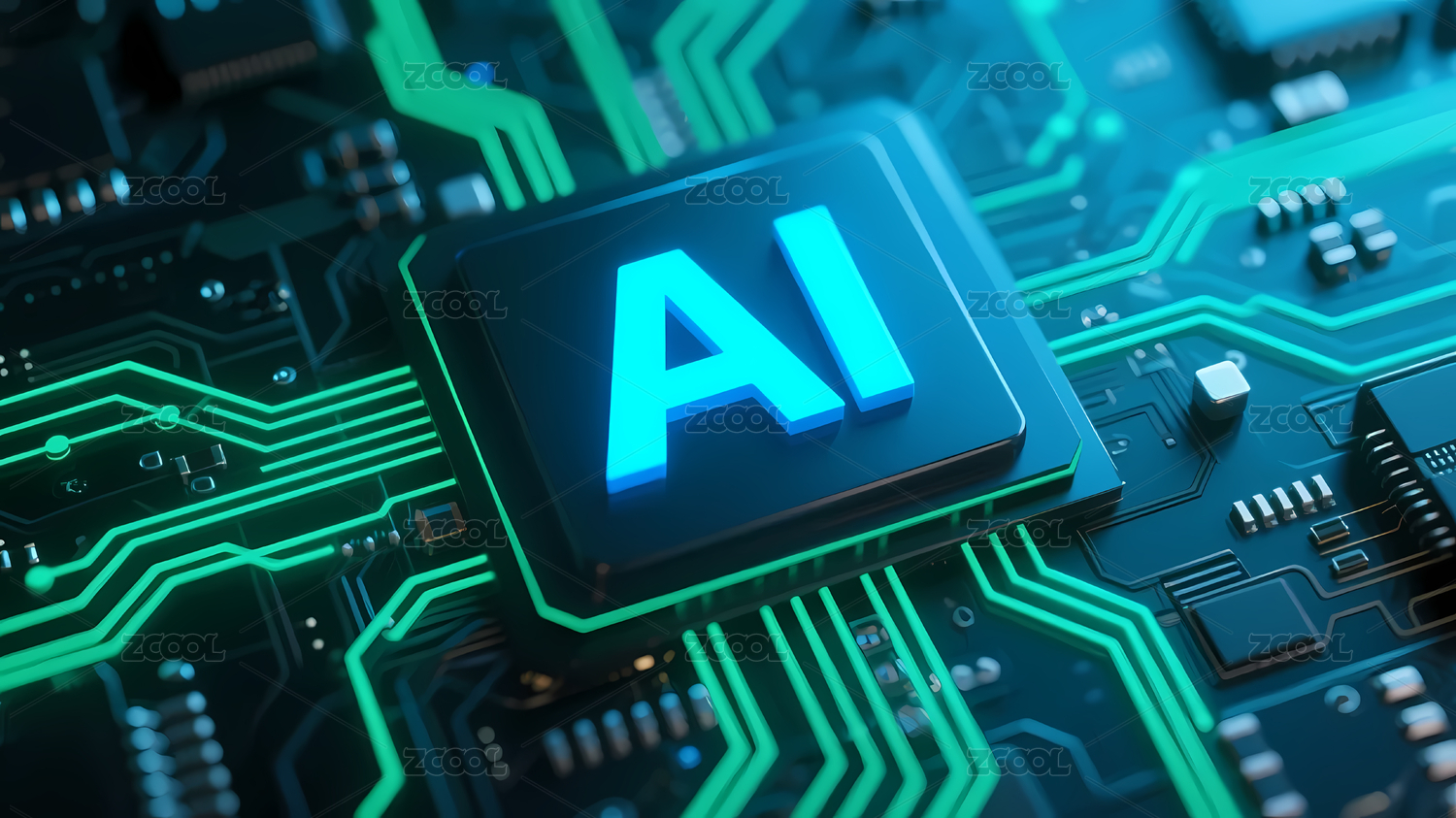 蓝色“AI”标志与电路板