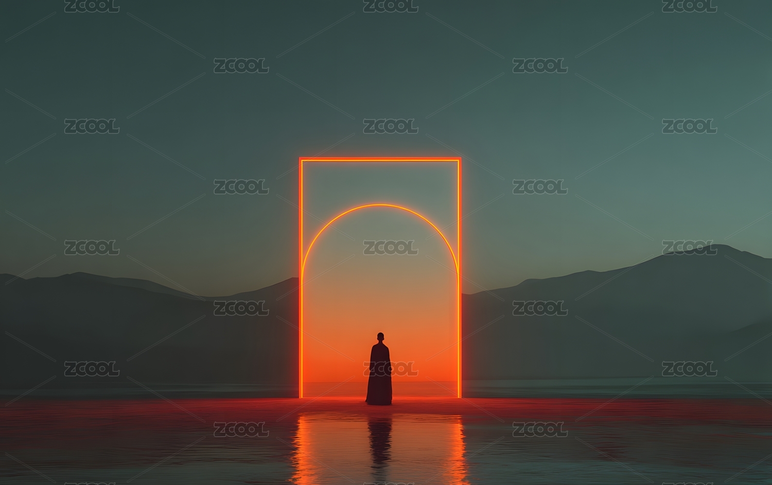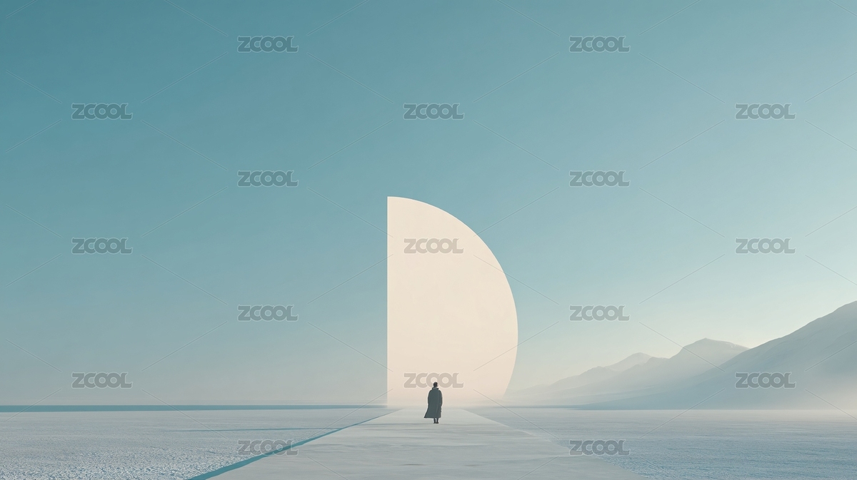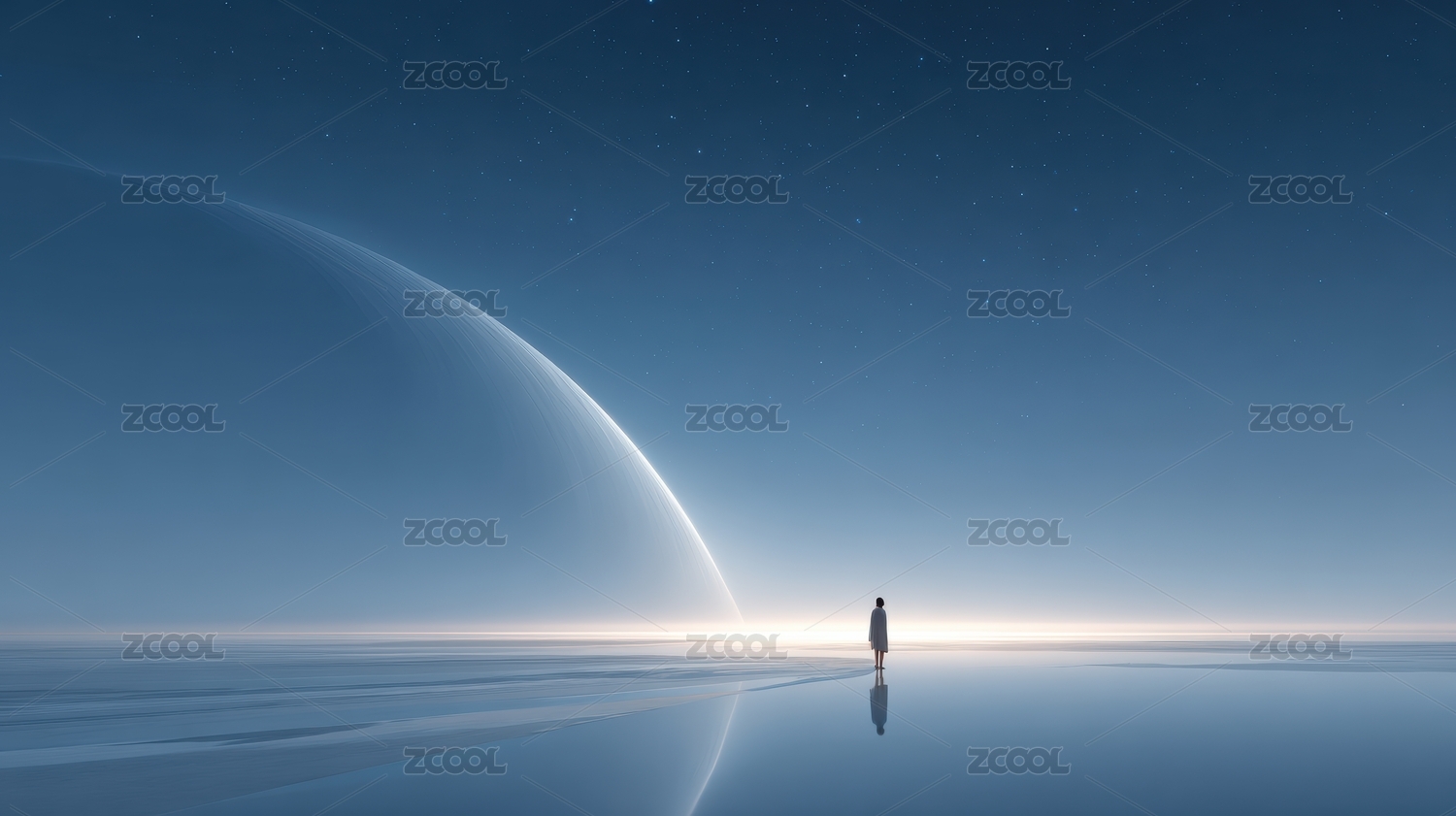 半月,山脉,天空,奇幻,插画,矢量,场景,梦幻,艺术,氛围