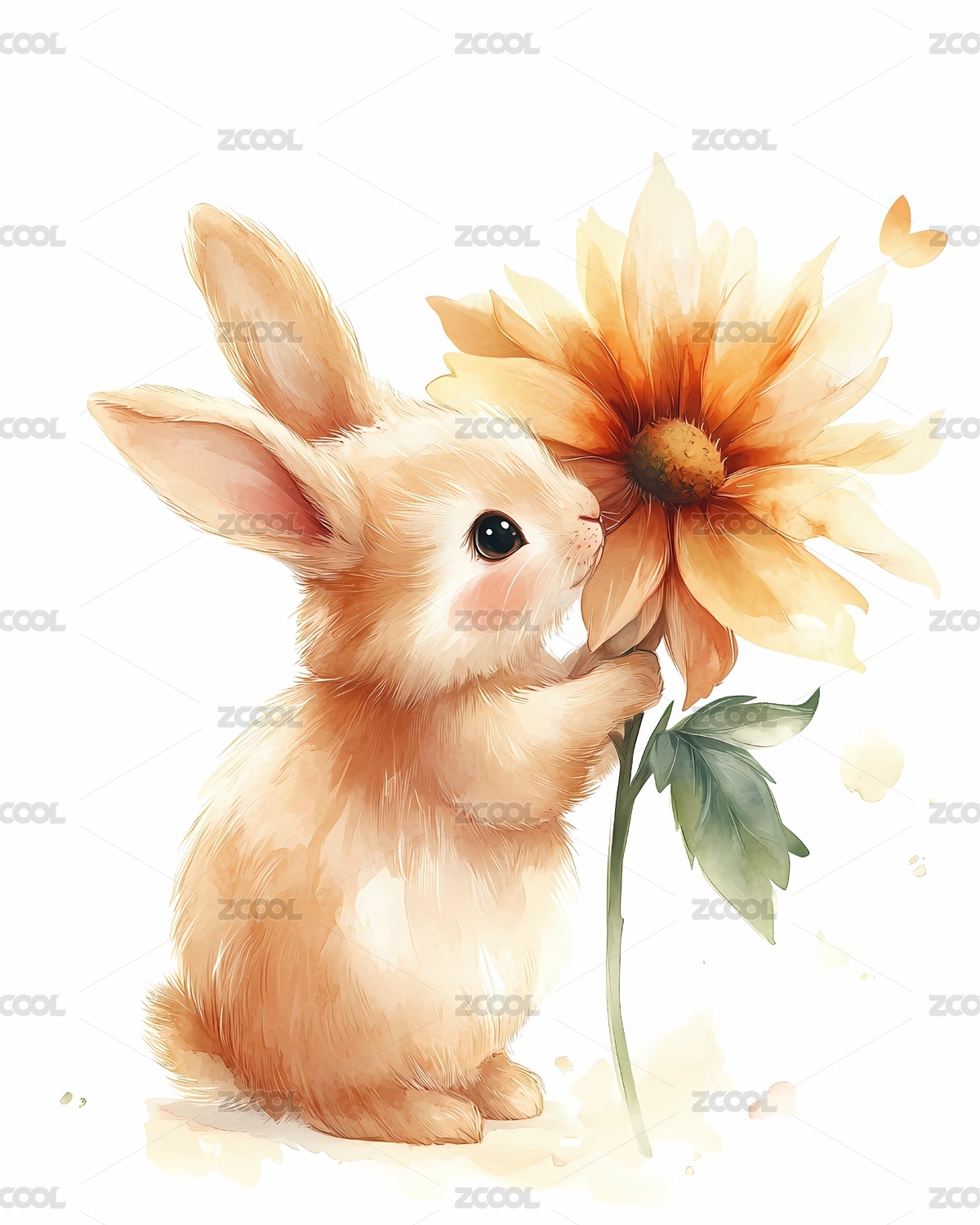 可爱兔子花朵水彩风格插画