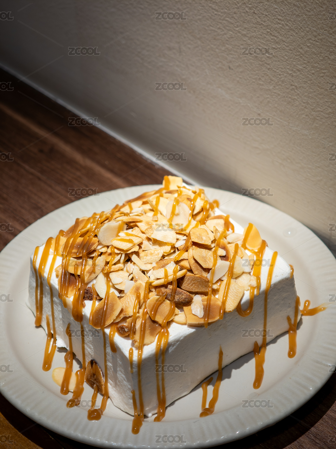 焦糖杏仁蛋糕,蛋糕,甜点,焦糖,杏仁,杏仁片,慕斯蛋糕,焦糖酱,美食,美味