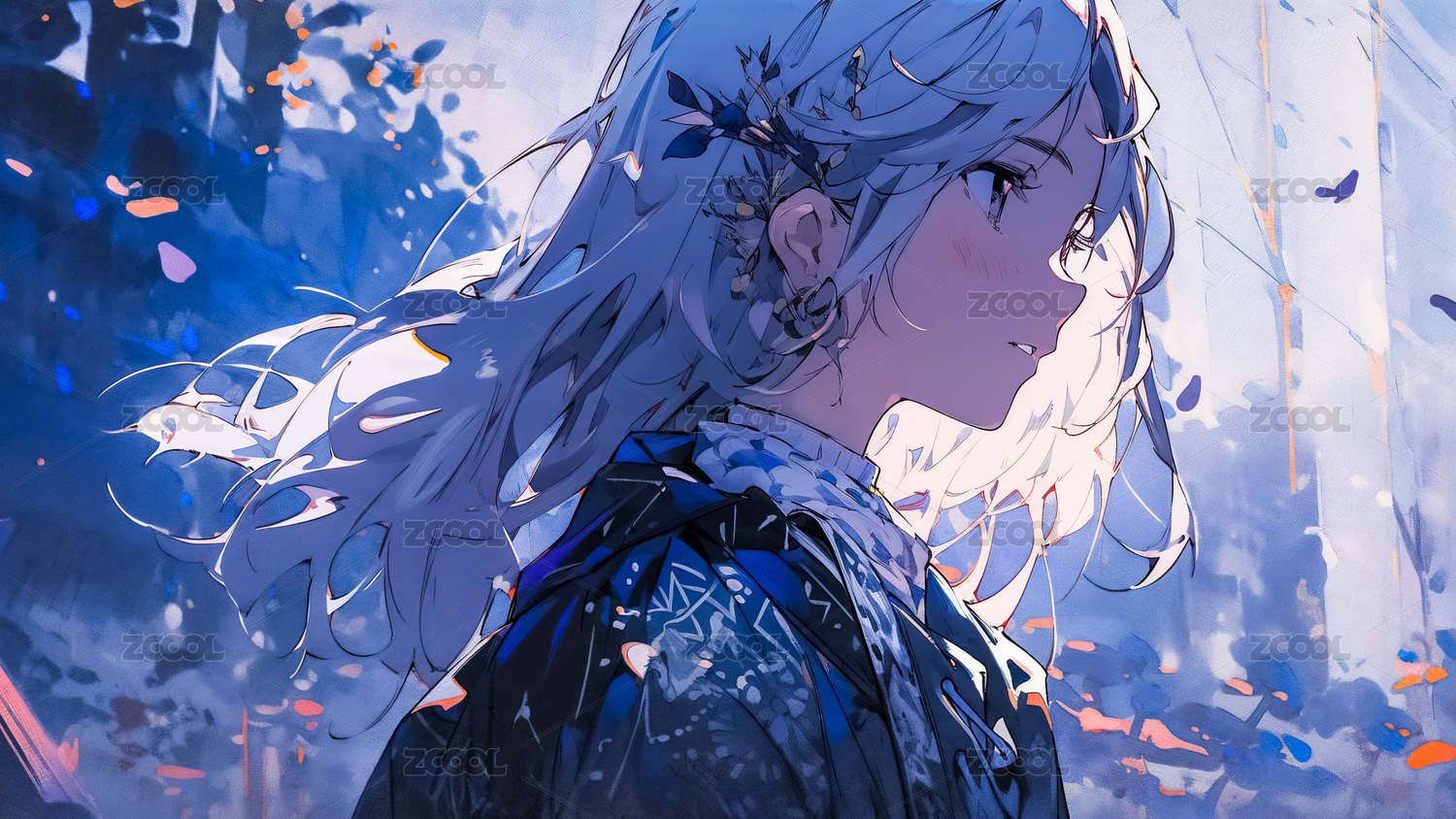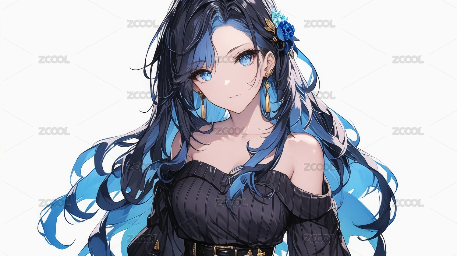 蓝发时尚动漫女孩