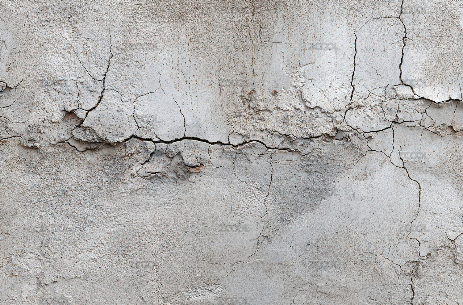 白色墙体的开裂风化特写