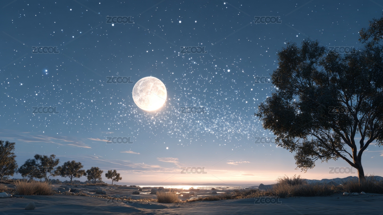 自然,户外,空间,美丽,宁静,夜景,夜空,满月,繁星,银河