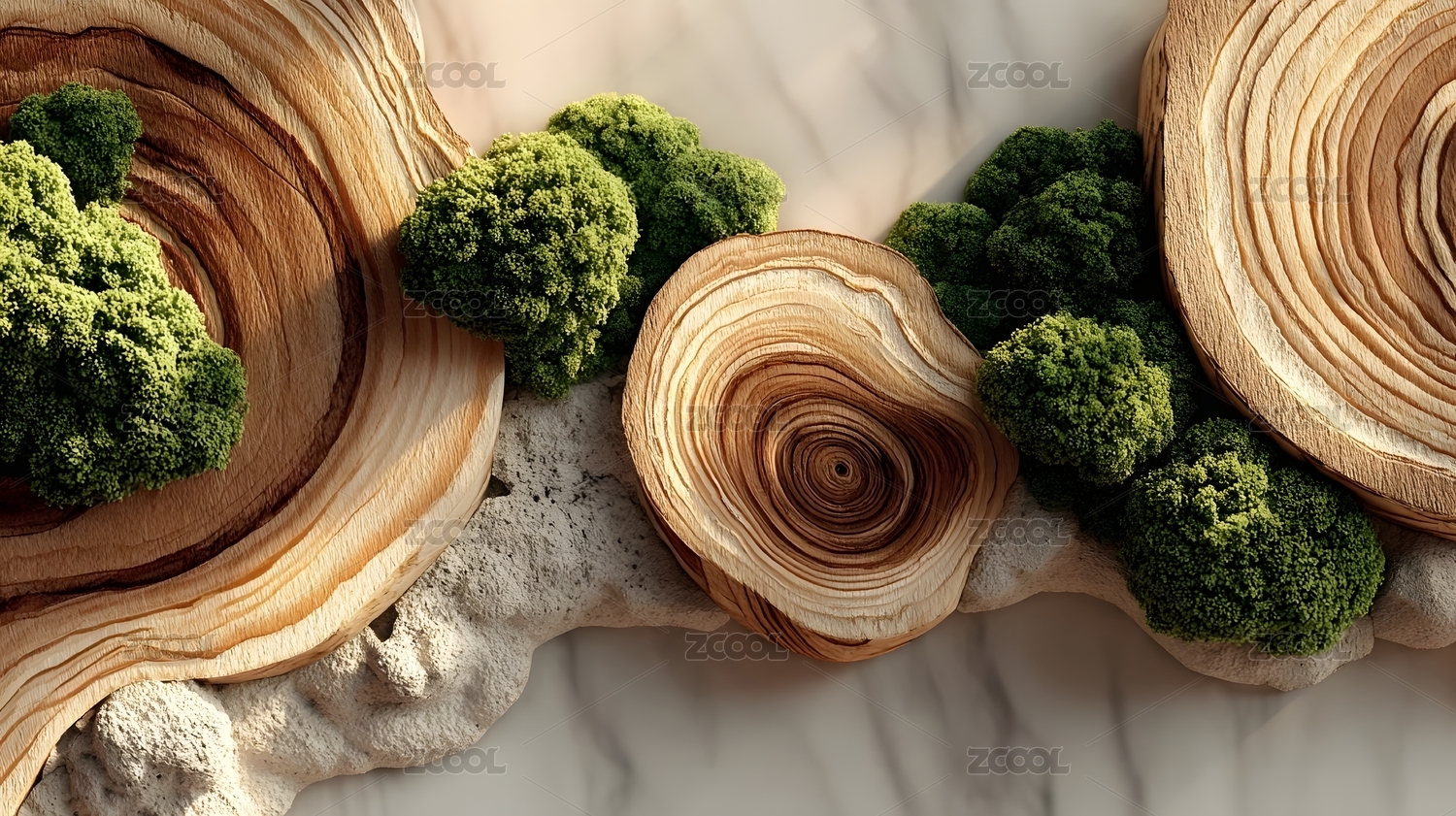 年轮木纹与青苔组合