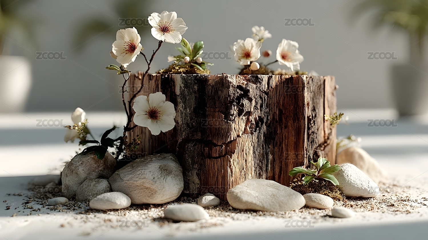 自然木桩与绿植装饰