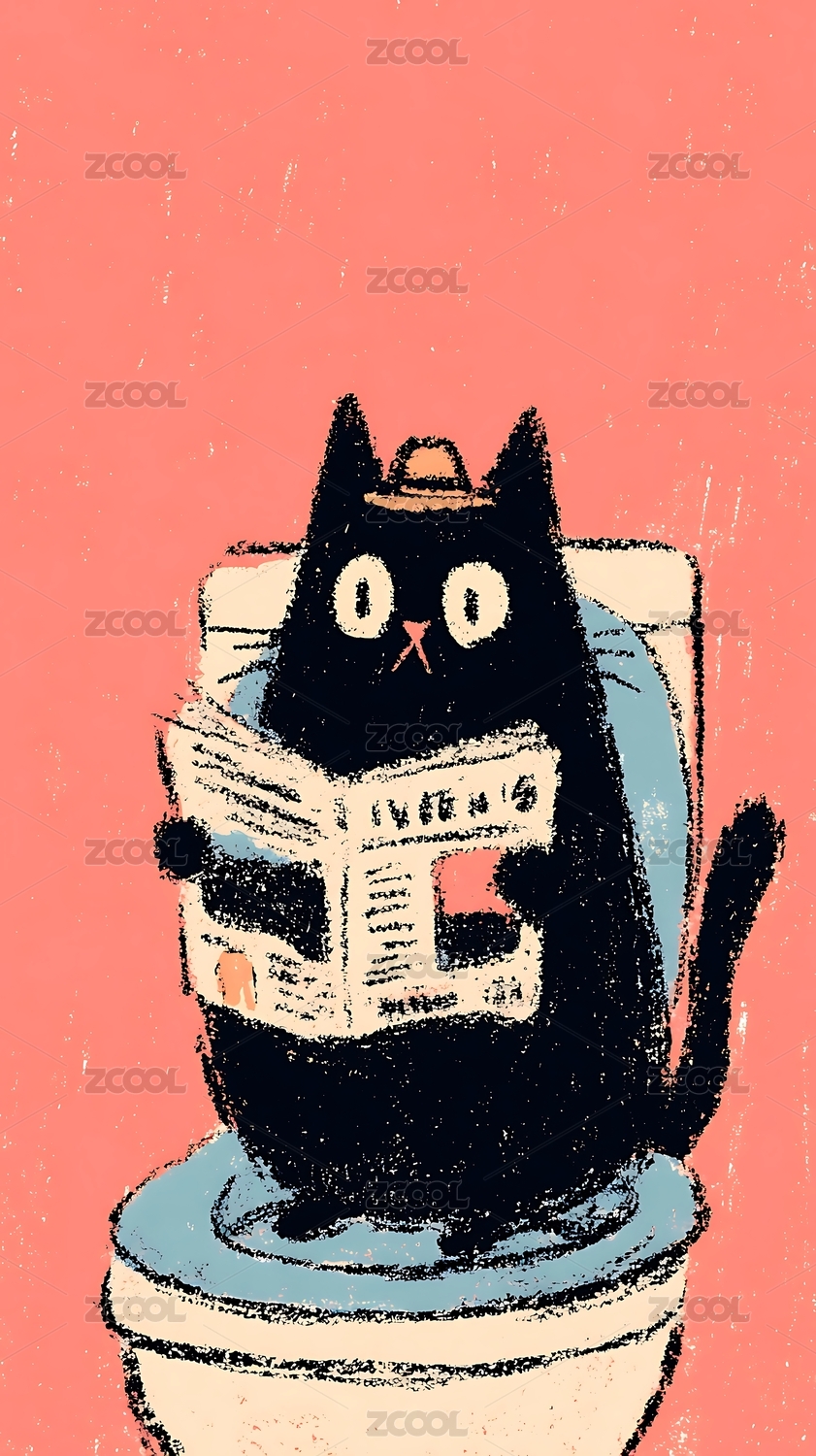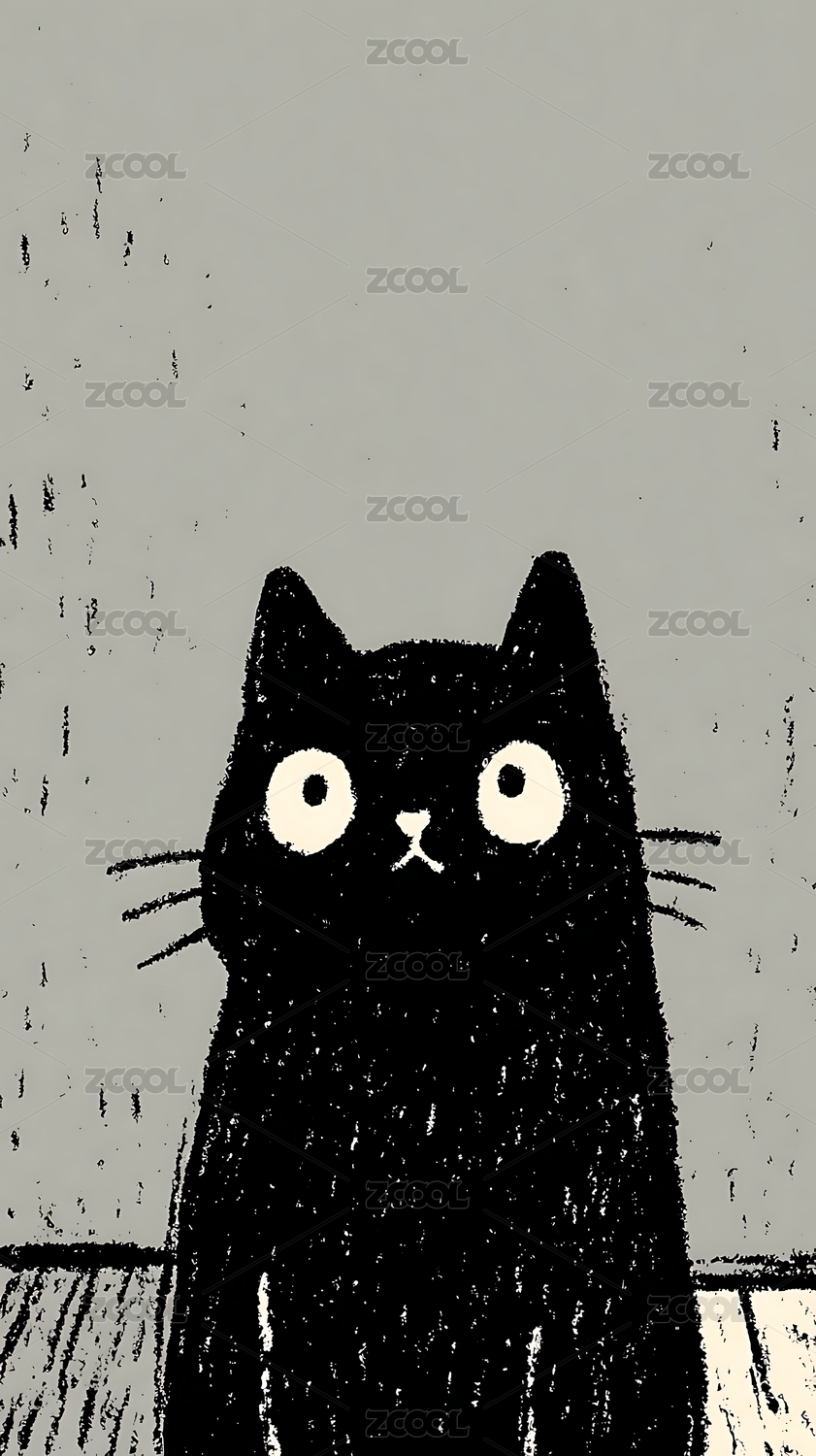 卡通,可爱,插画,艺术,猫咪,动物,萌宠,黑白,猫