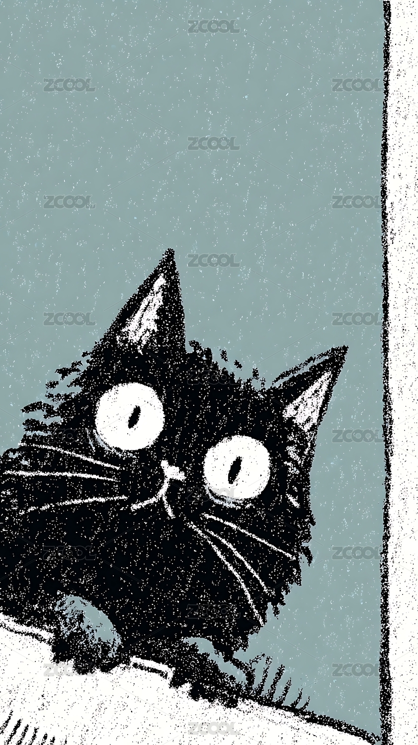 卡通,可爱,插画,艺术,猫咪,动物,萌宠,黑白,猫