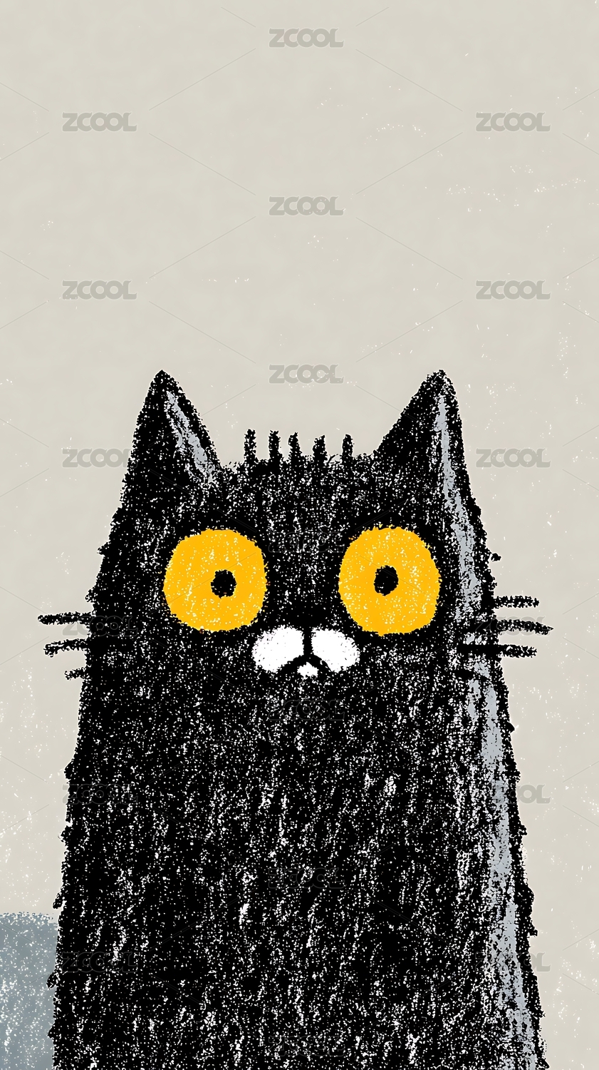 卡通,可爱,插画,艺术,猫咪,动物,萌宠,黑白,猫