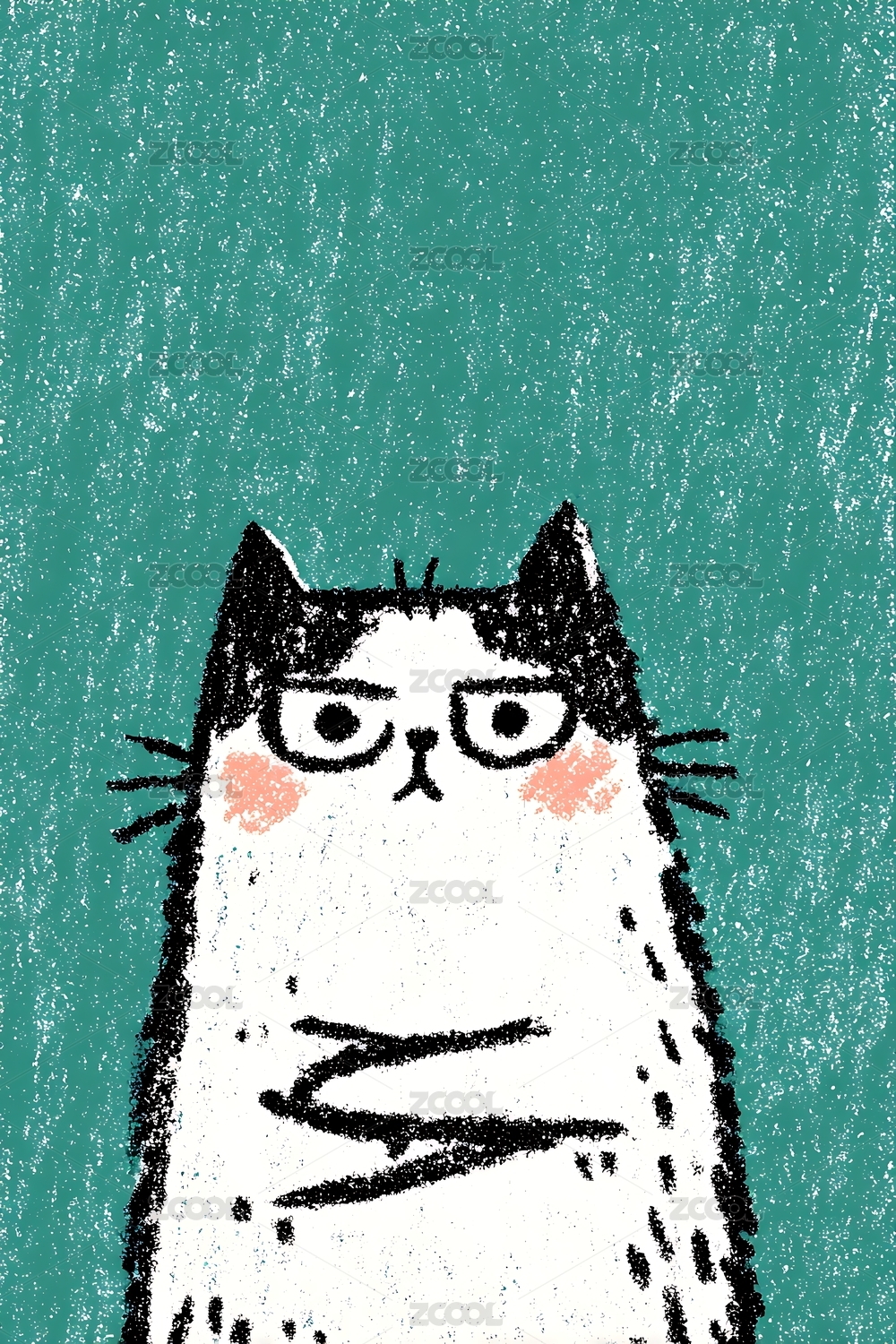 卡通,可爱,插画,艺术,猫咪,动物,萌宠,黑白,猫