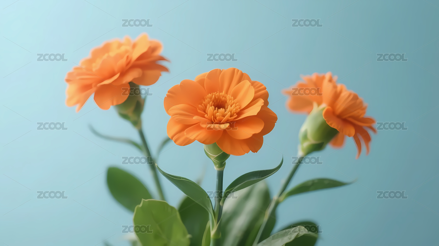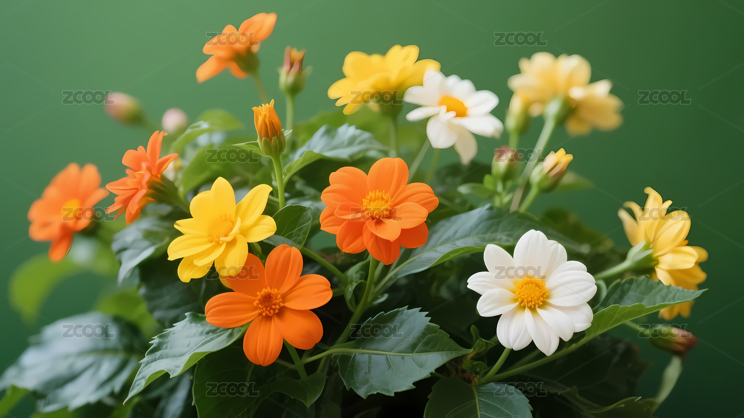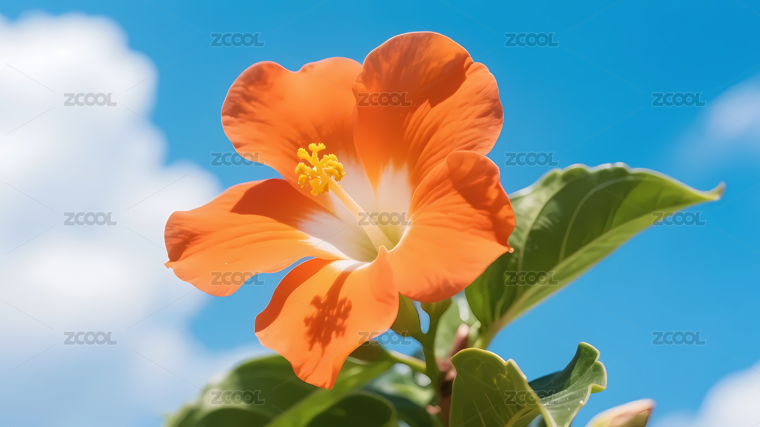 橙色,白色,花朵,绿叶,斑点,浅灰,鲜艳,旁边,几片