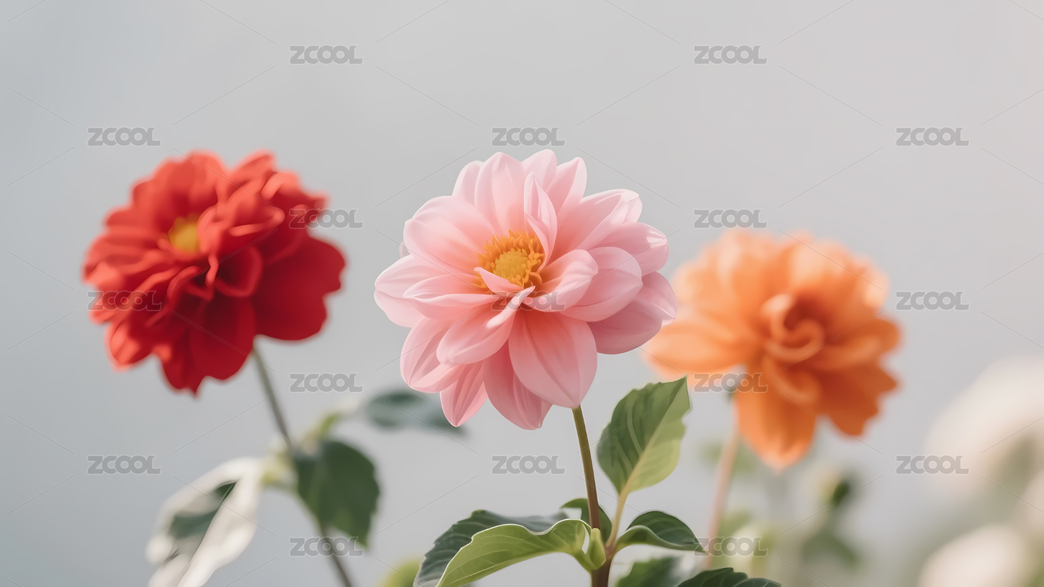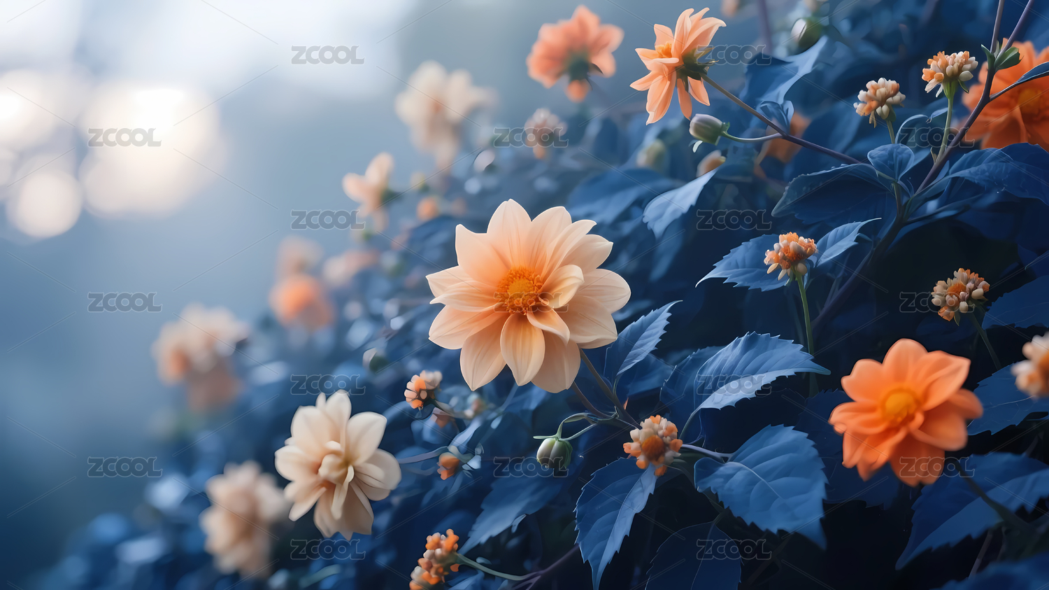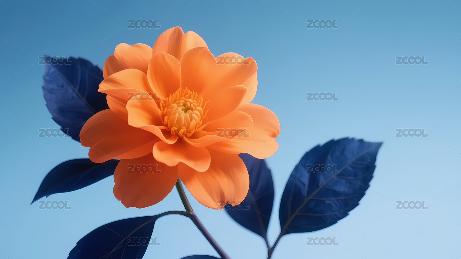 橙色,白色,花朵,绿叶,斑点,浅灰,鲜艳,旁边,几片