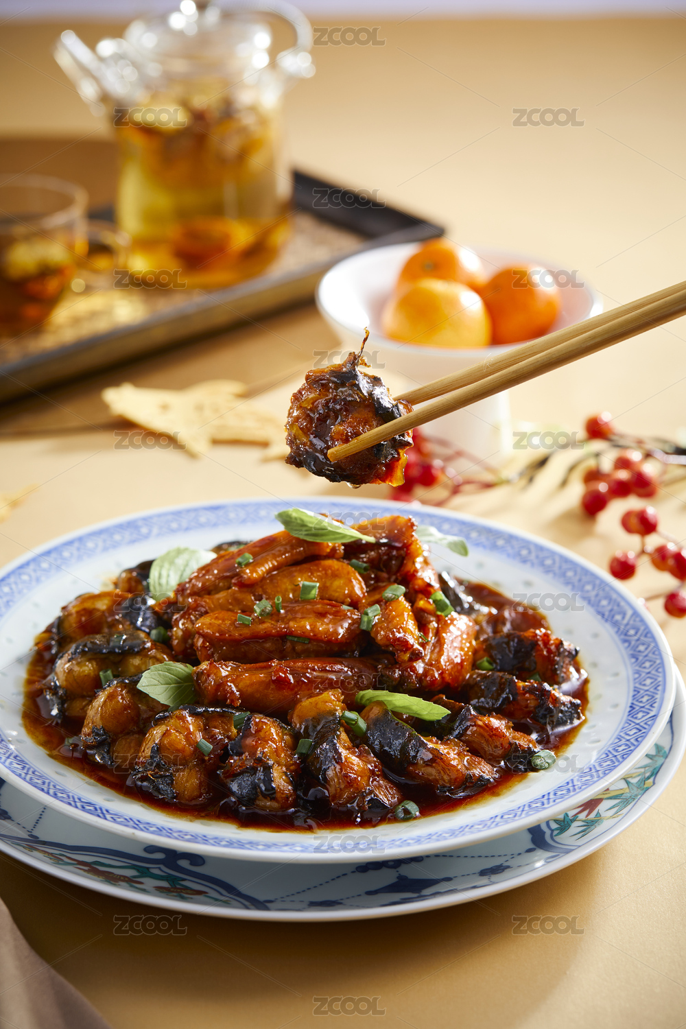 传统中餐美食龙凤呈祥 鸡翅烧鳗鱼