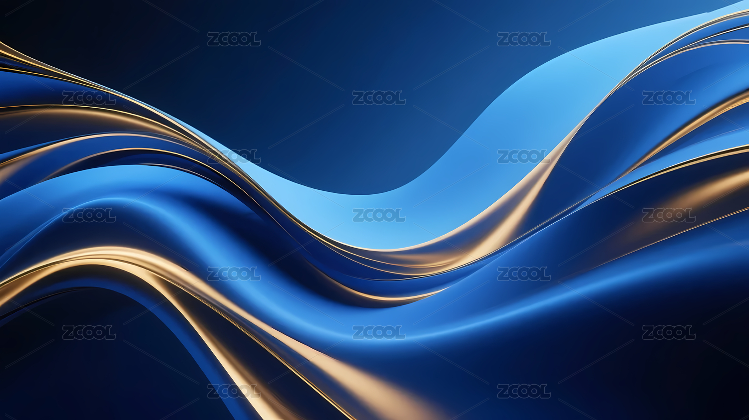 蓝色,波浪,金色,深蓝色,渐变,浅蓝色,曲线,优雅,现代,流畅
