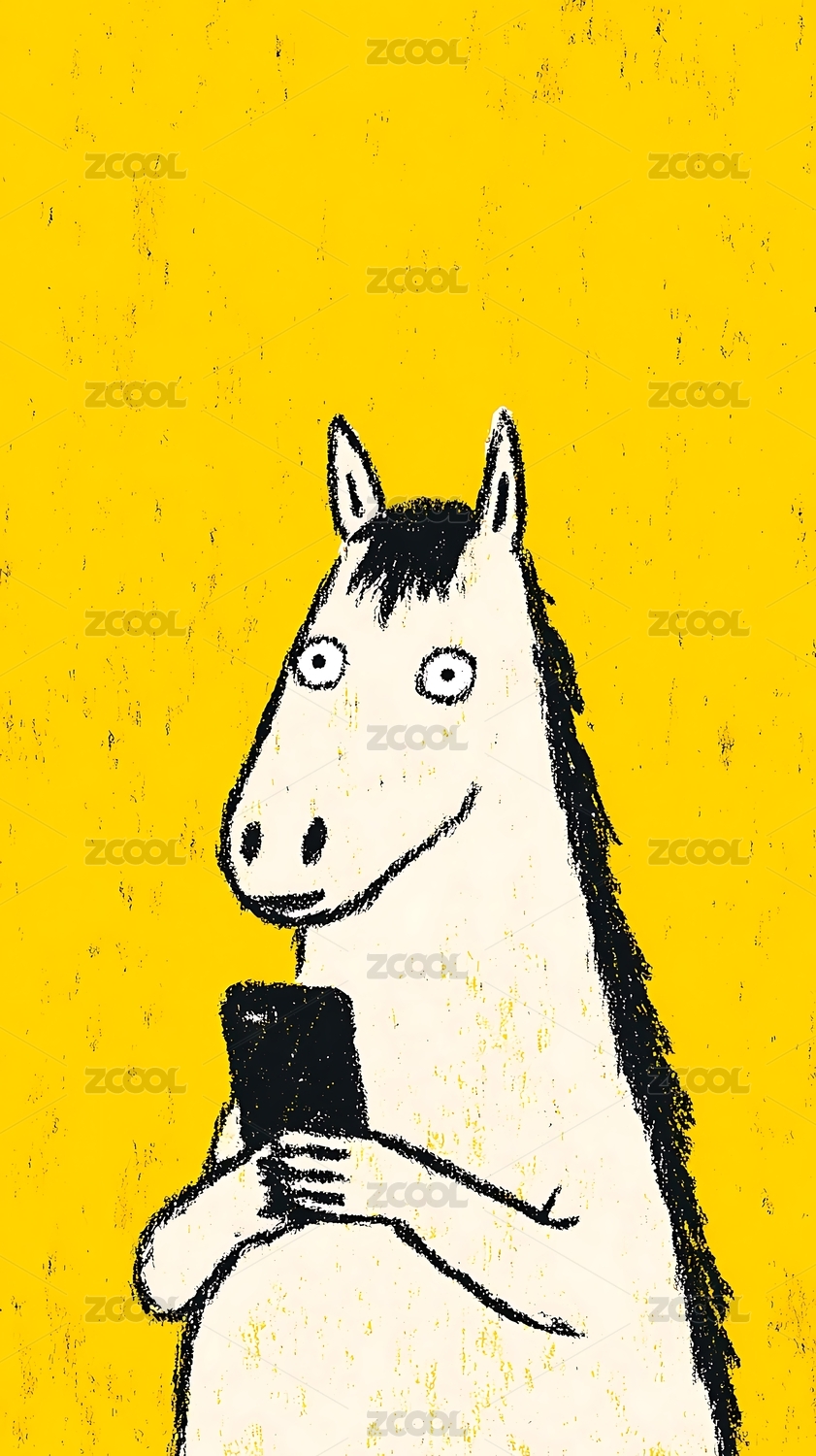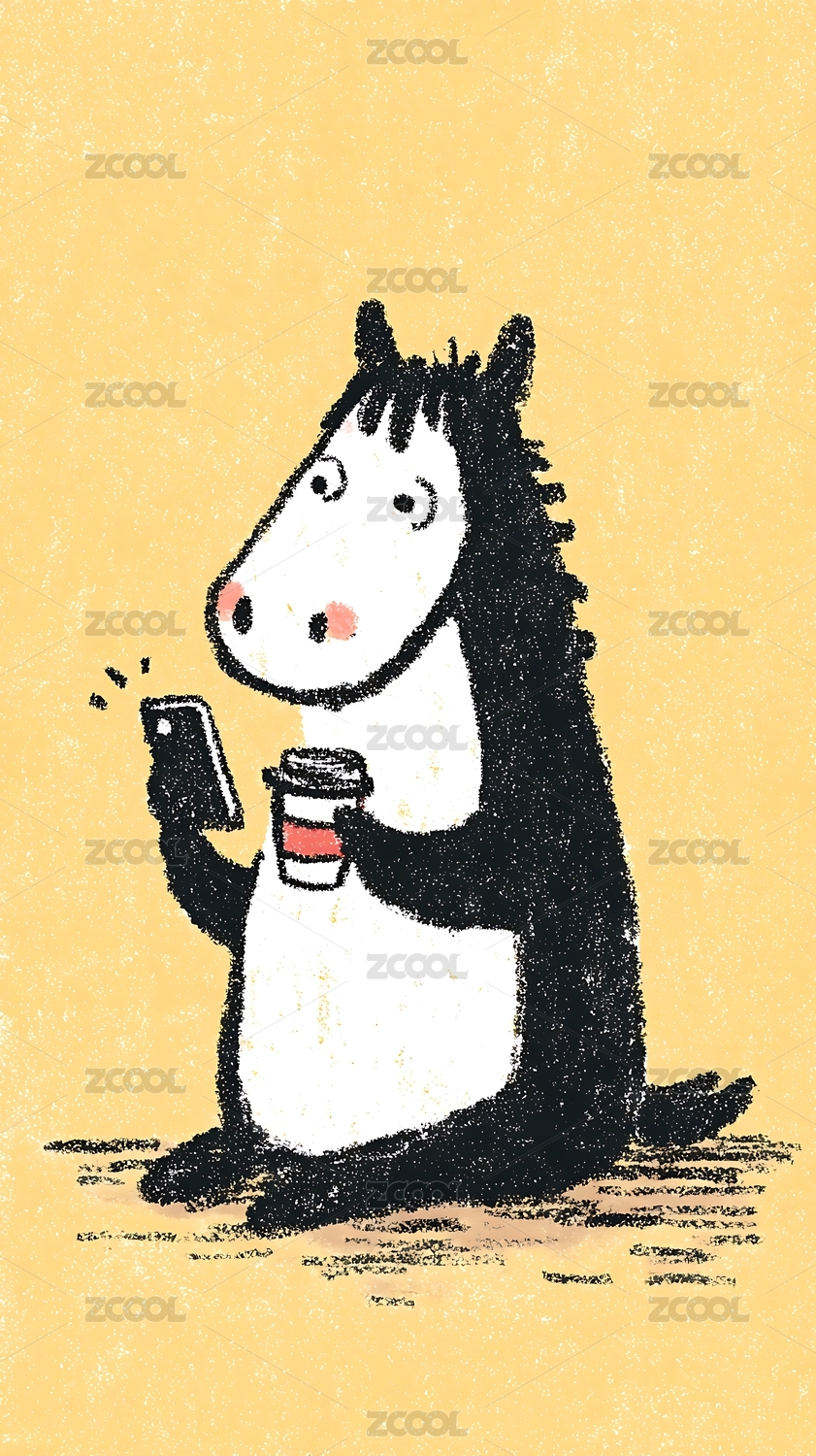 艺术,插画,可爱,动物,萌宠,黑白,卡通,牛马