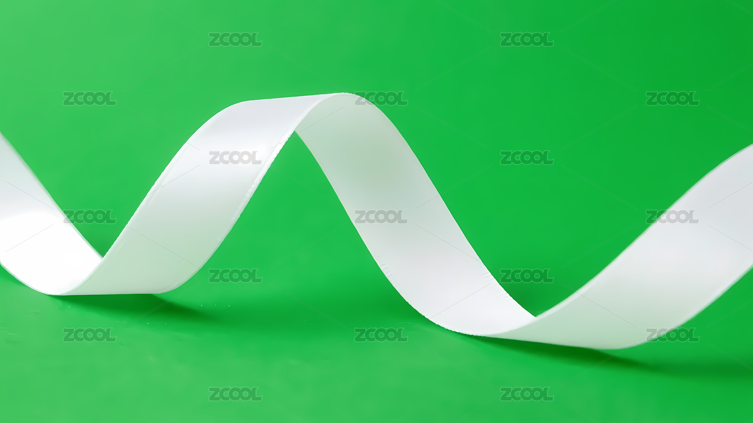 白色缎带在绿色背景上蜿蜒