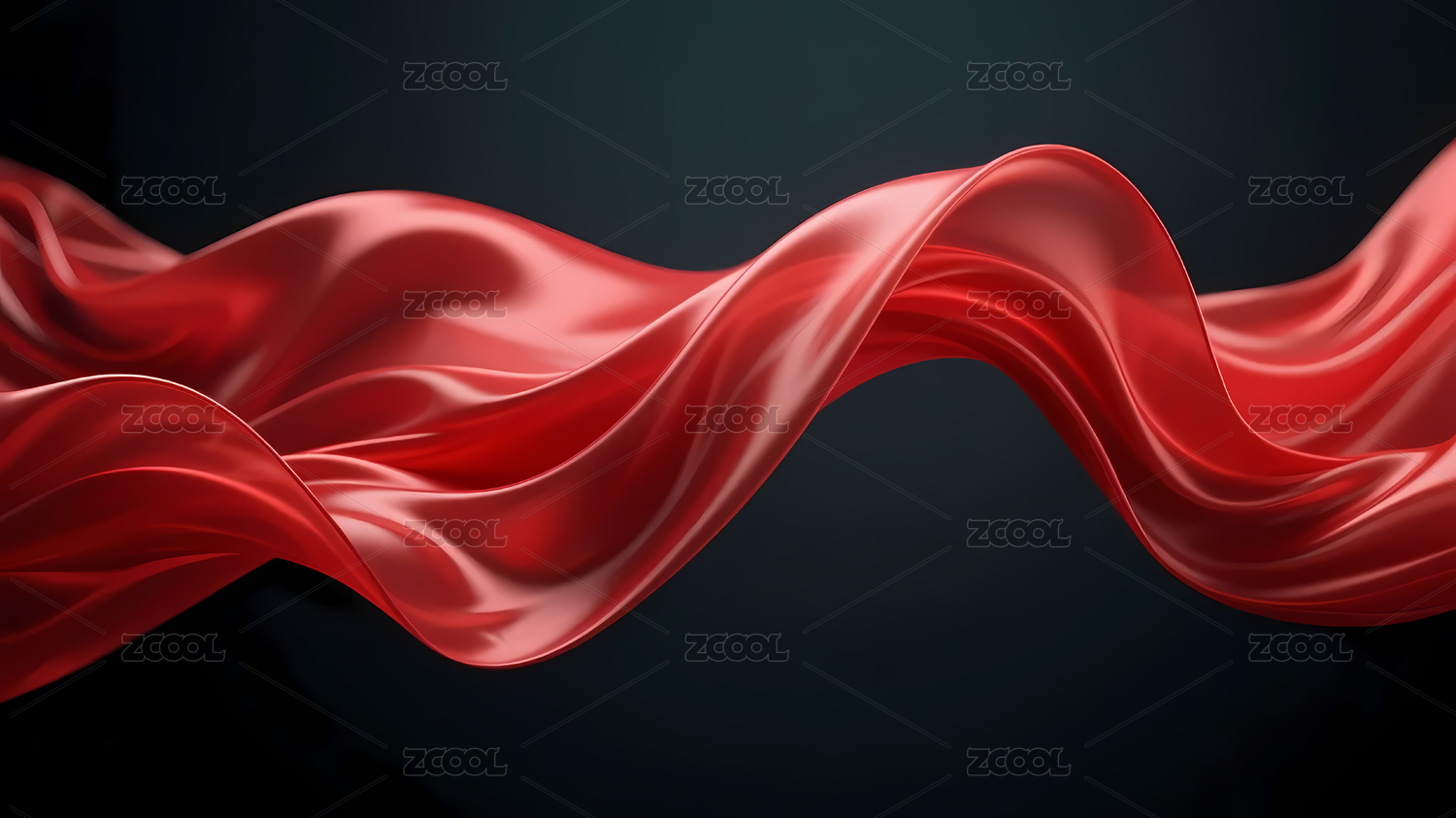 红色绸缎曲线与深灰背景