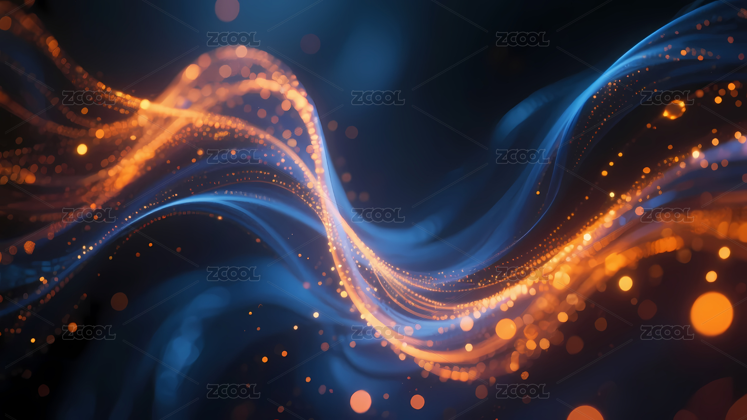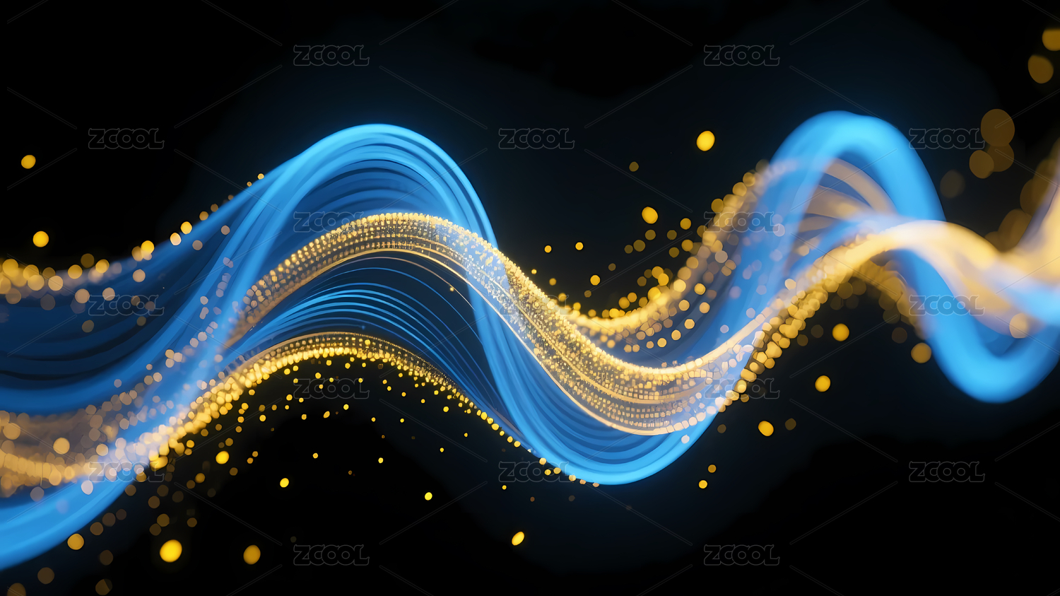 主体,金色,波浪,线条,蓝色,粒子,闪烁,黑色,交织
