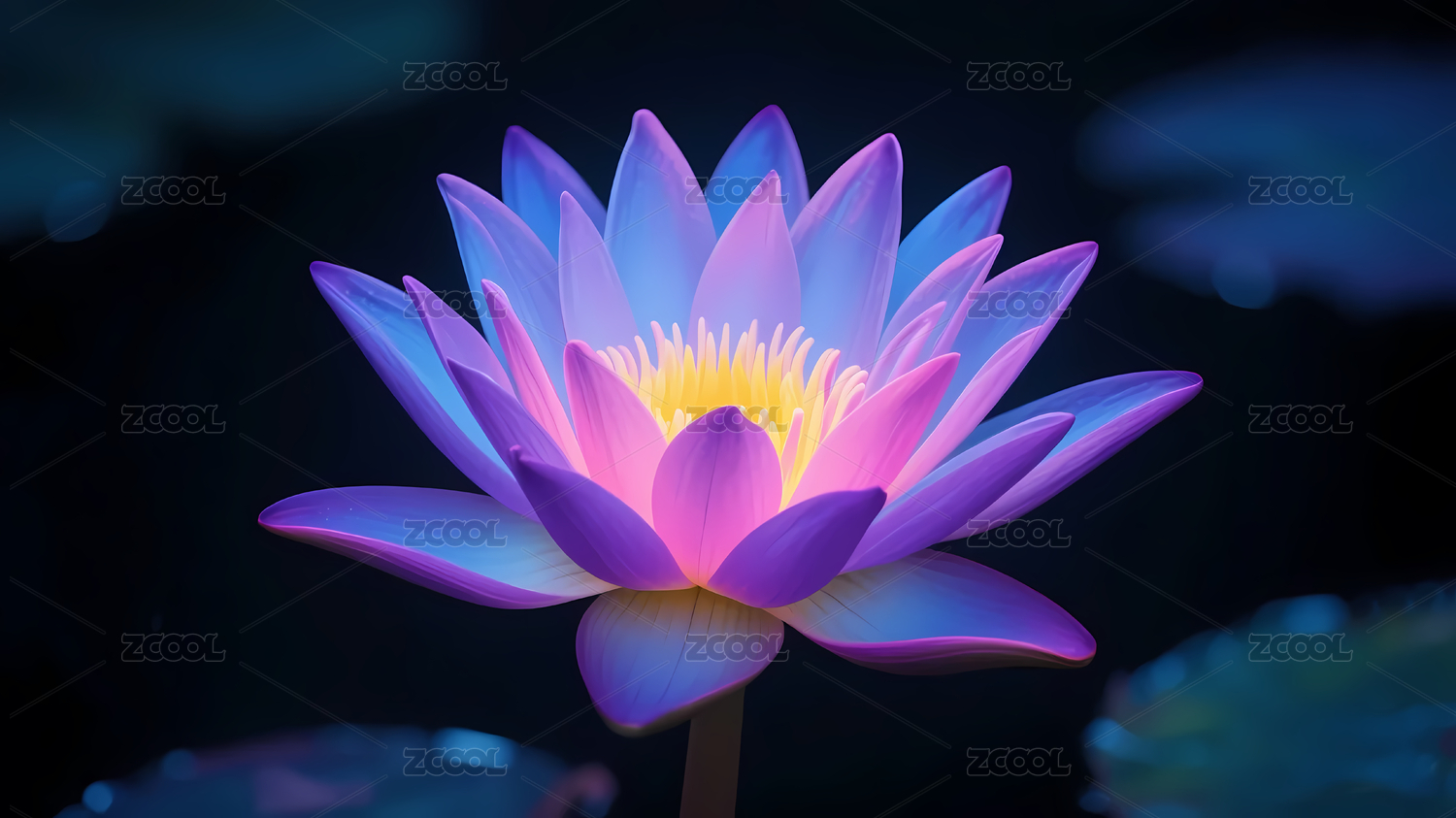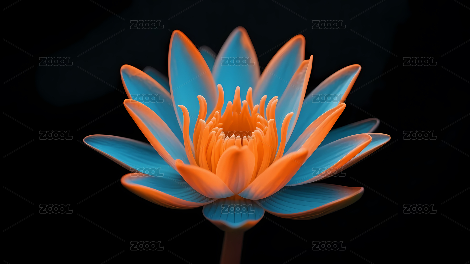 蓝色,黑色,渐变,粉色,莲花,盛开,花瓣,花心,橙黄