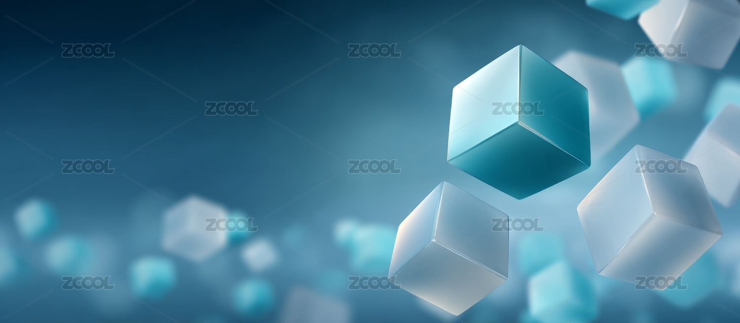 蓝色方块漂浮意境