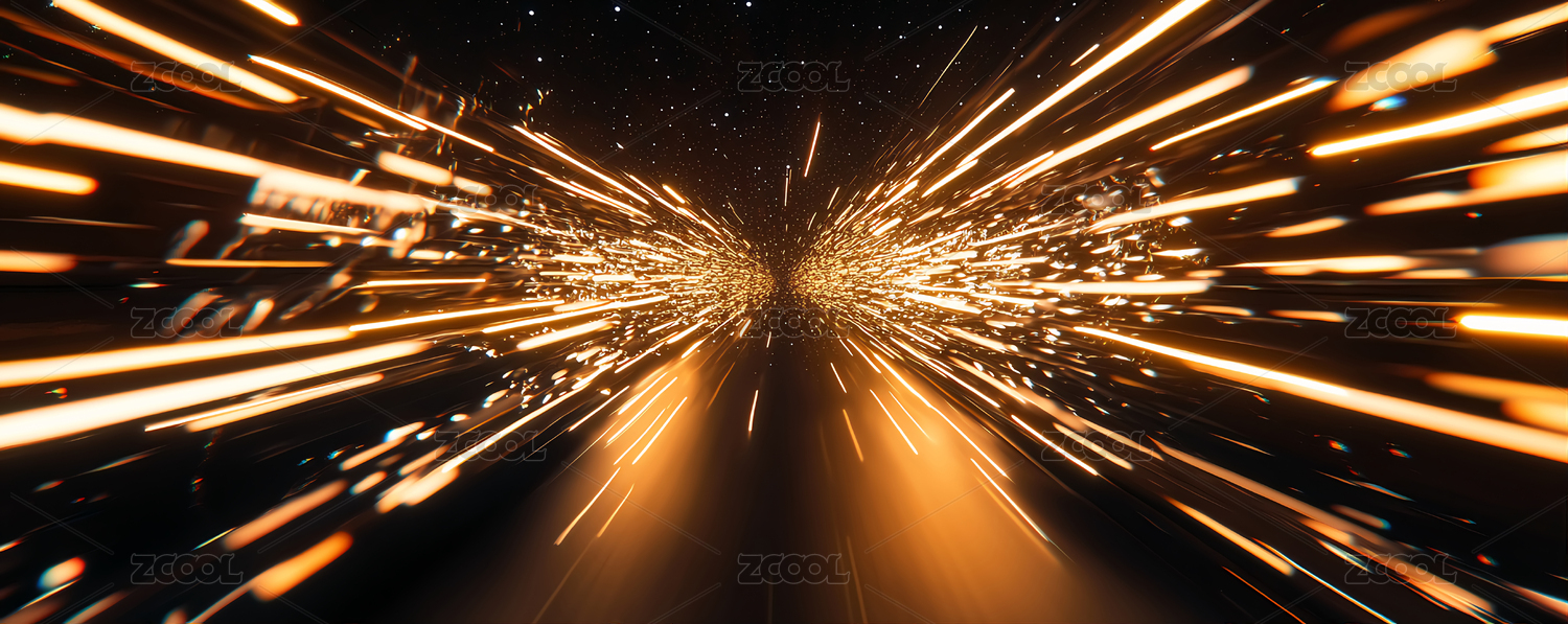 黄金,金色,光束,轨迹,数据流,传输,网络,三维,空间,夜空