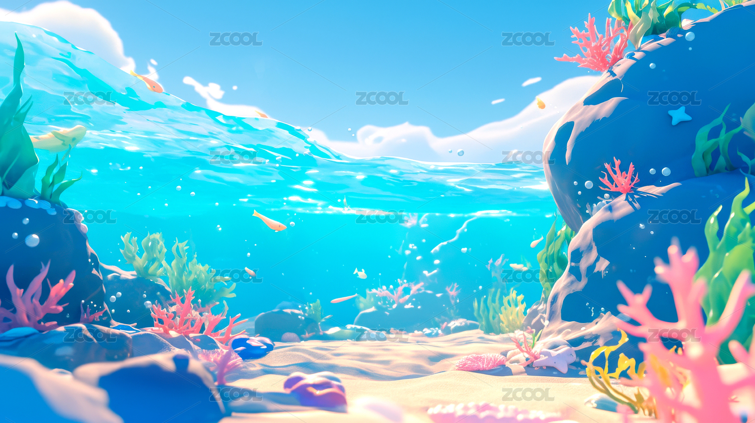 海底,海底世海底世界,海底世界卡通插画,海底插画,海洋插画,童话,卡通,水下世界,海洋世界,海洋生物