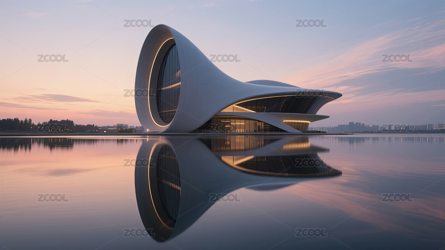 夜晚蓝调时刻未来风格单体建筑广场空地