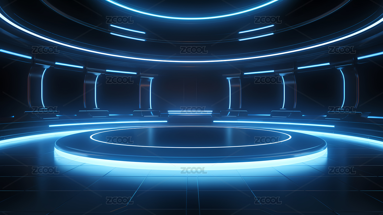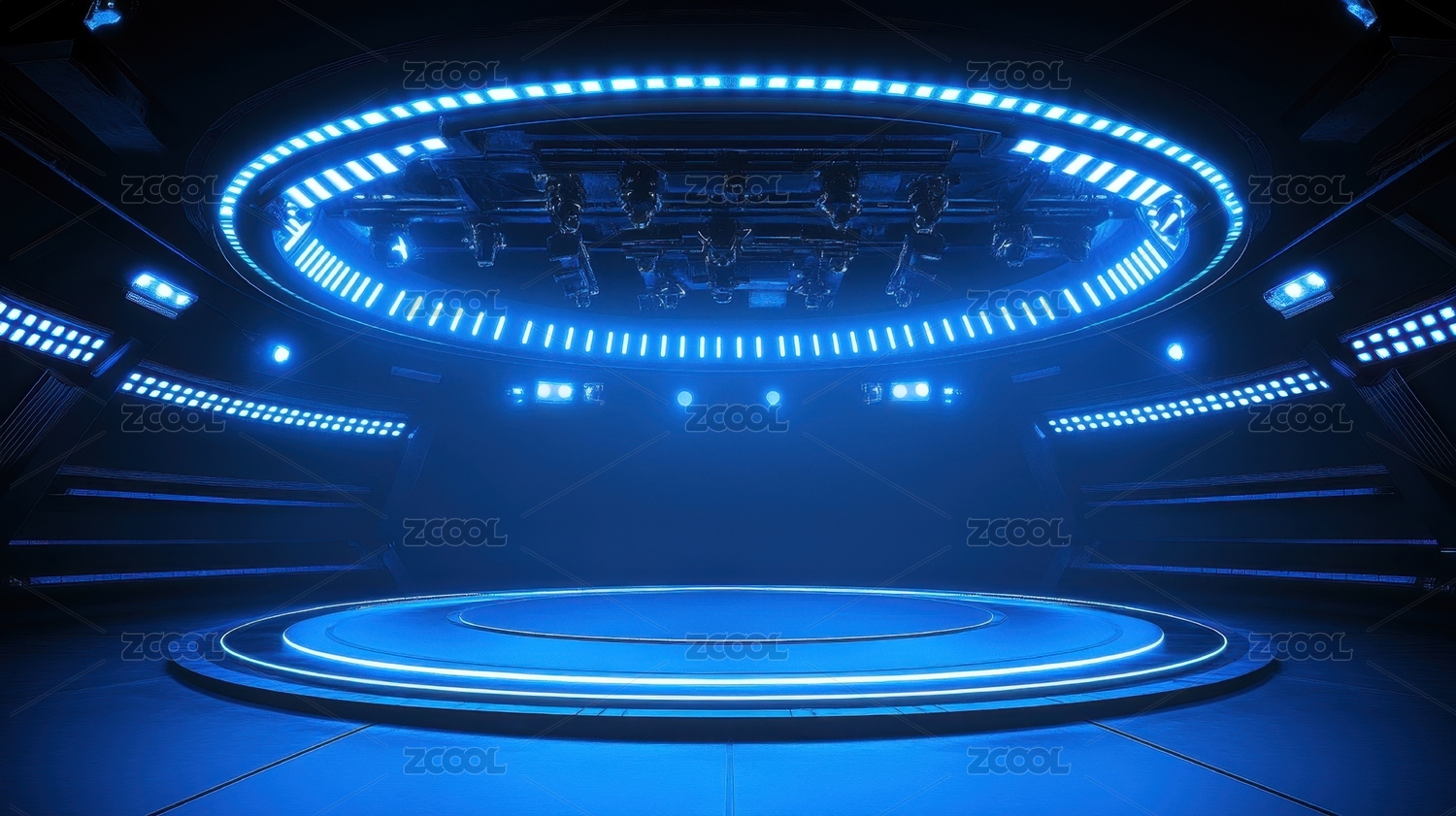 室内,光影,蓝色,舞台,圆形,科技感,未来感,灯光,空间,创意