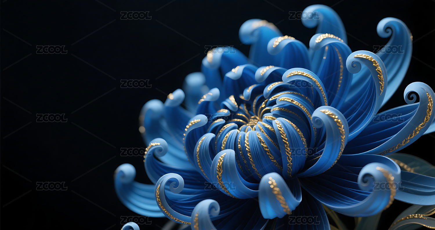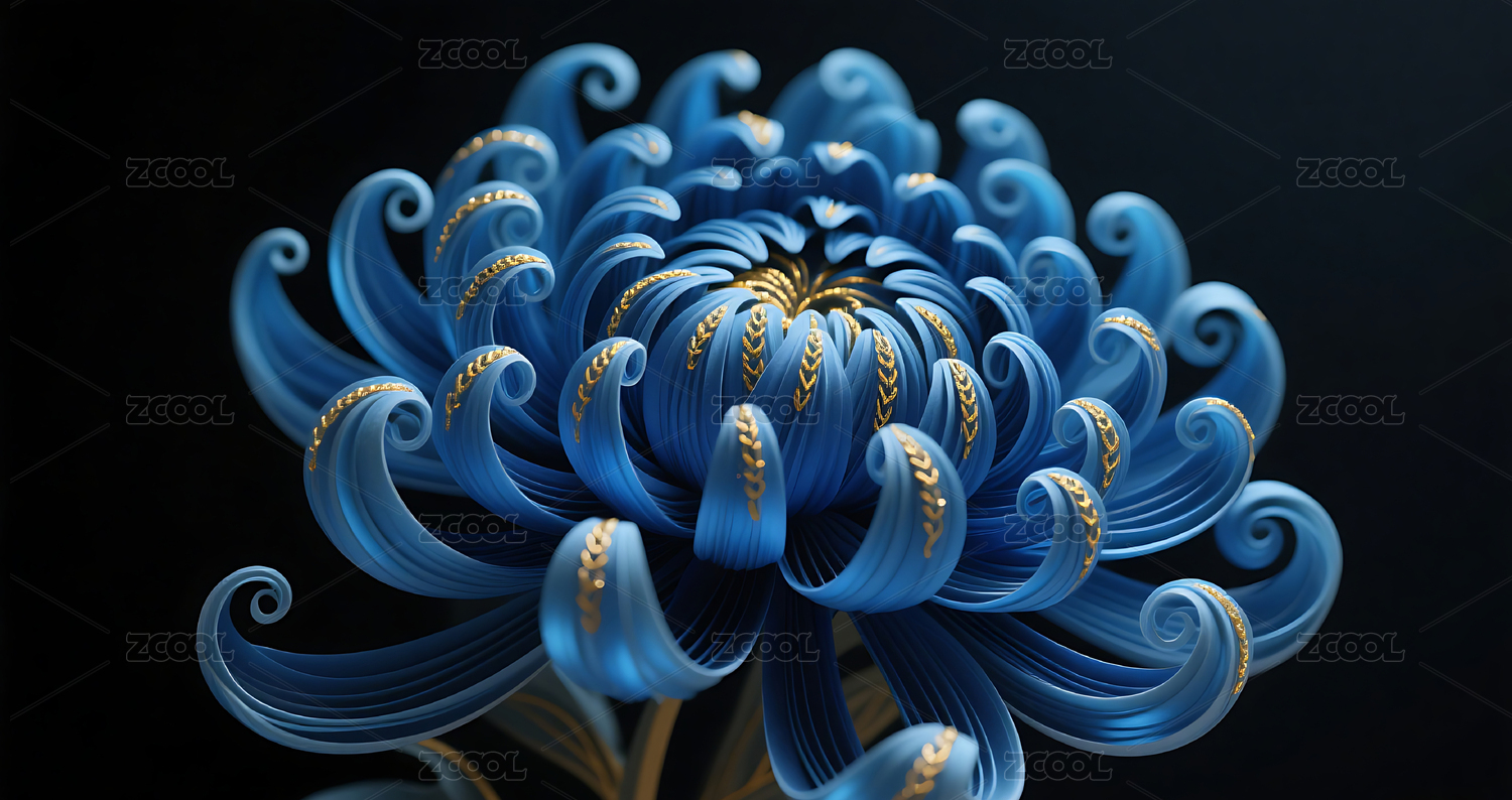 蓝色,黑色背景,金箔,卷曲,琉璃,菊花,艺术,背景,壁纸,立体