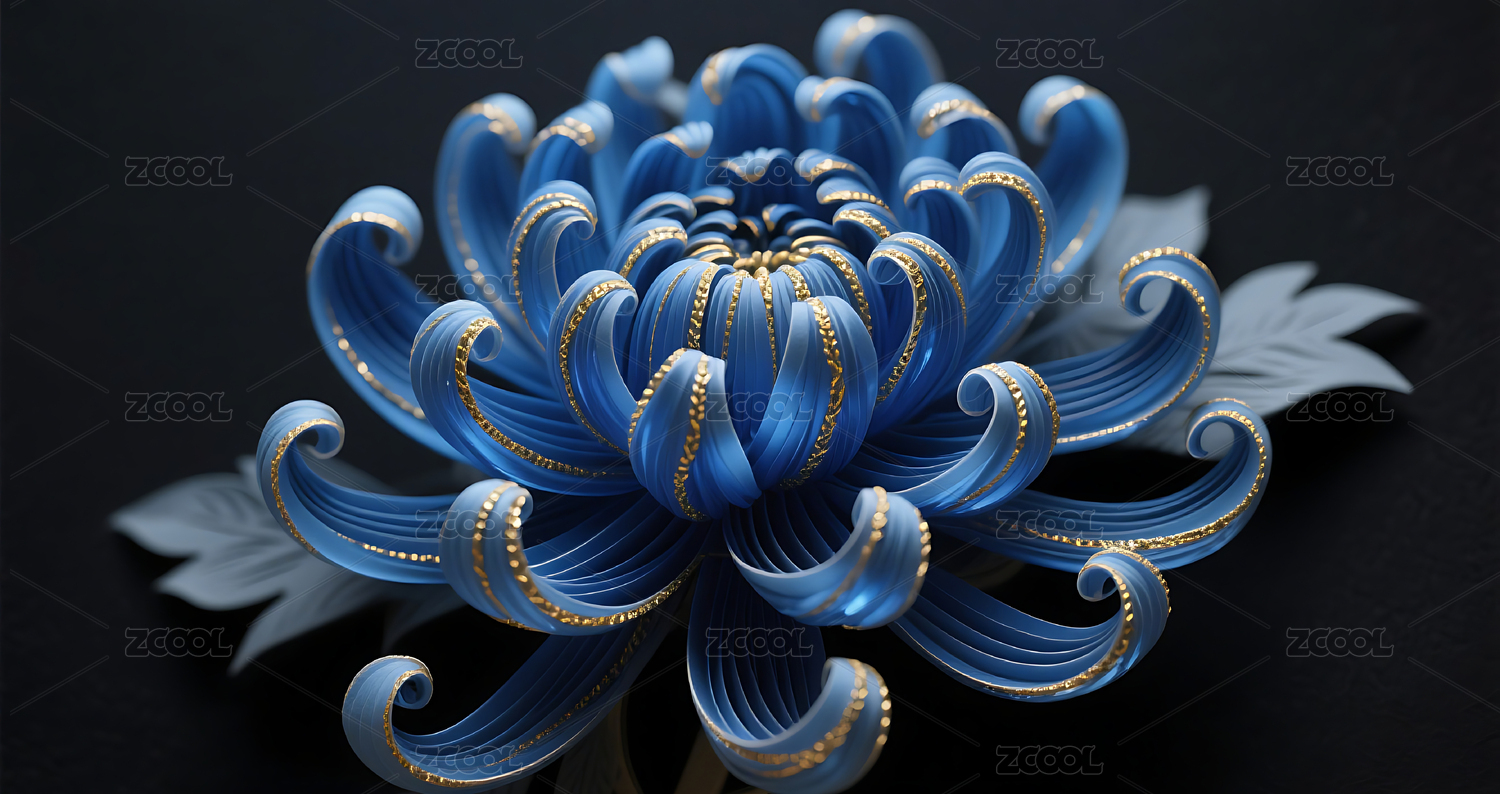 深蓝色渐变立体卷曲琉璃蓝菊花