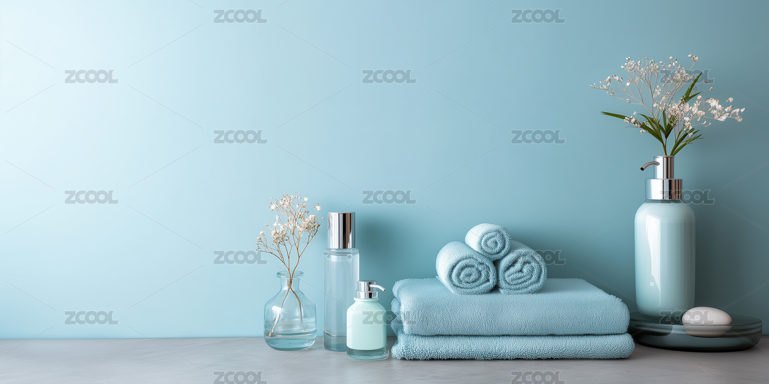 带有瓶罐毛巾的简约spa场景