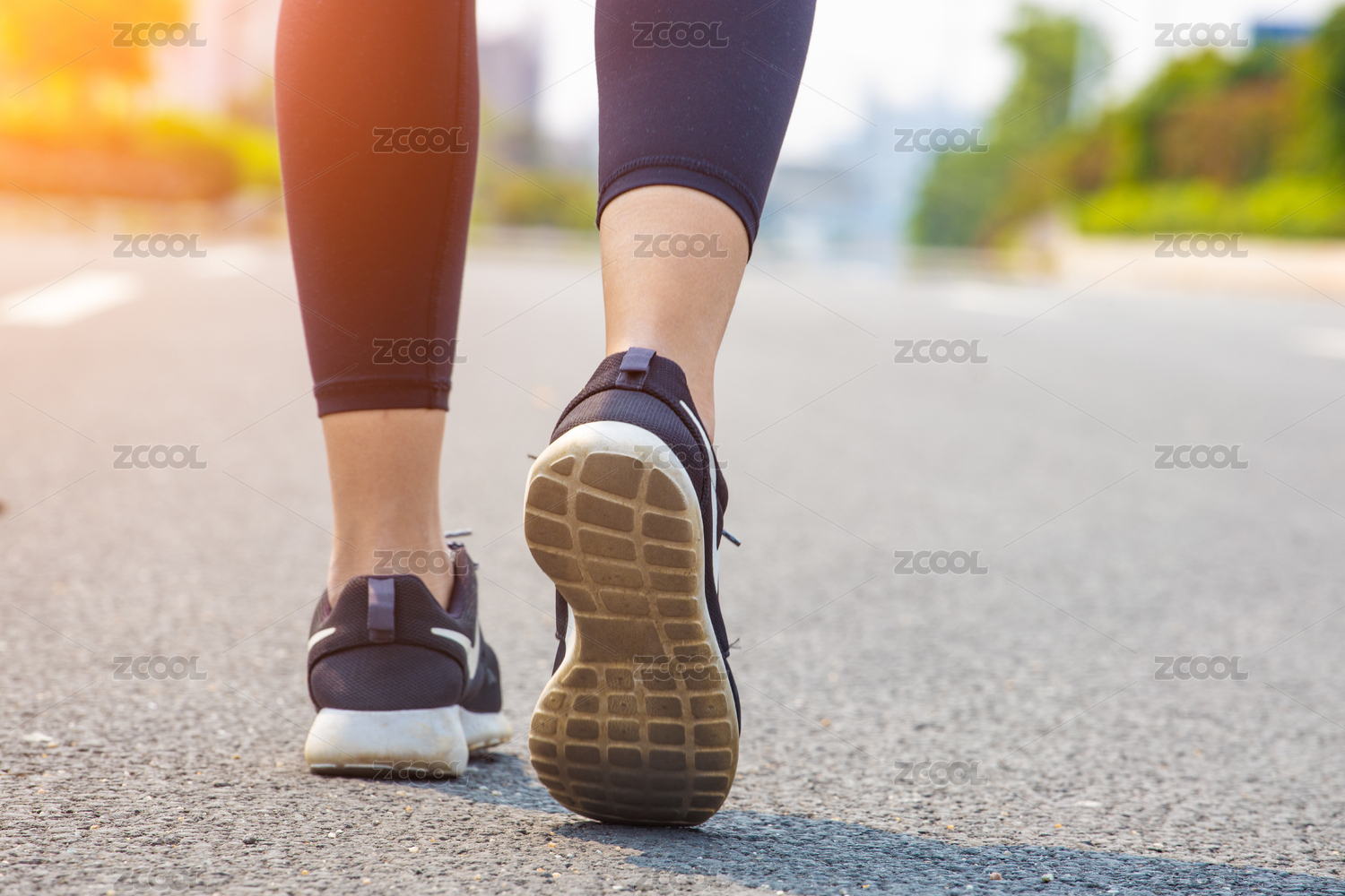 逆光跑步的步伐清晰的鞋底健美的亚洲女人腿