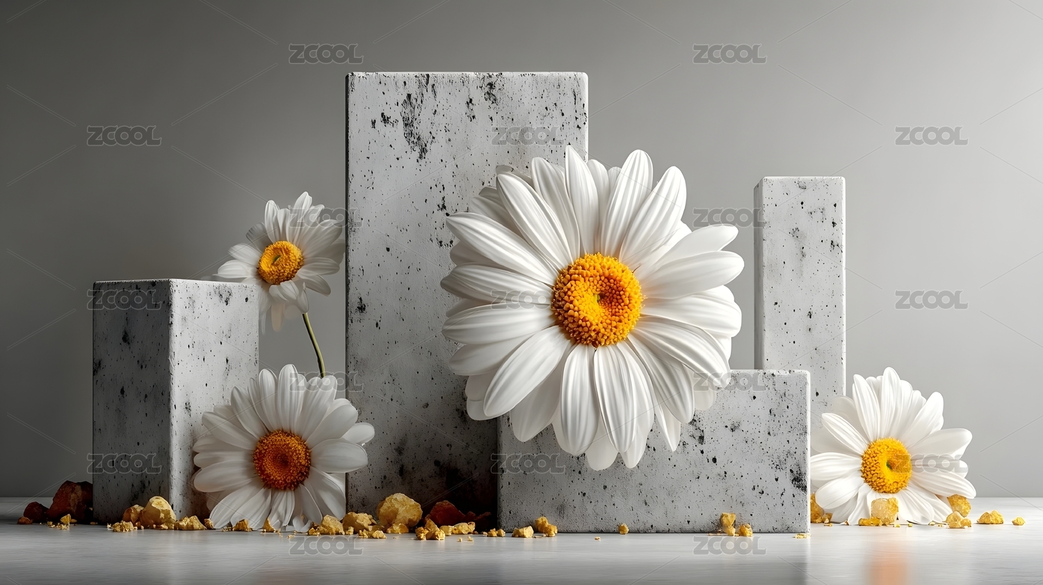 雏菊花与混凝土块组合