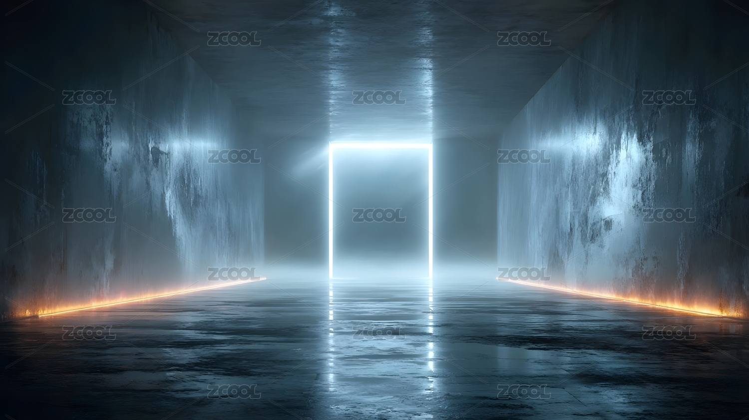 空间,混凝土,墙壁,光晕,现代,光线,科技感,未来感,反射,地面