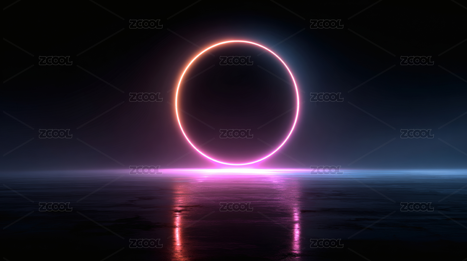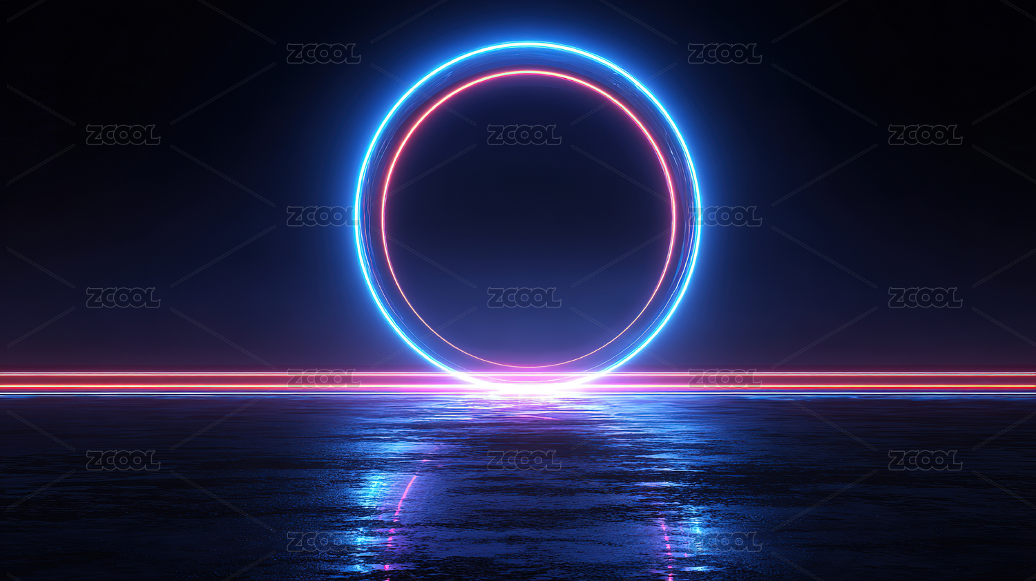 霓虹圆环与反射地面的未来感场景