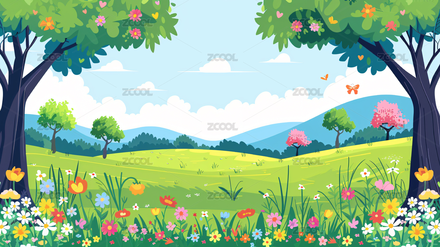 可爱卡通六一儿童节彩旗玩耍场地背景
