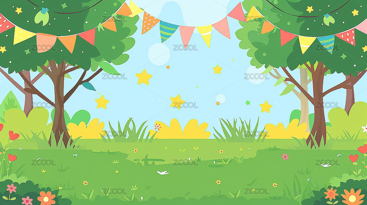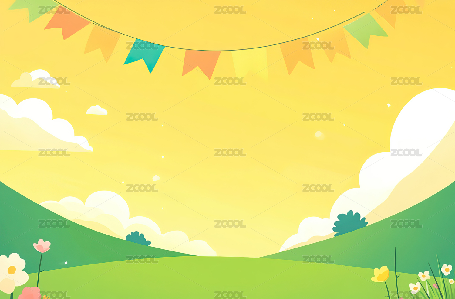 可爱卡通六一儿童节彩旗玩耍场地背景