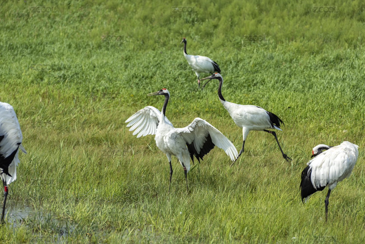 扎龙丹顶鹤自然保护区沼泽湿地里的丹顶鹤群