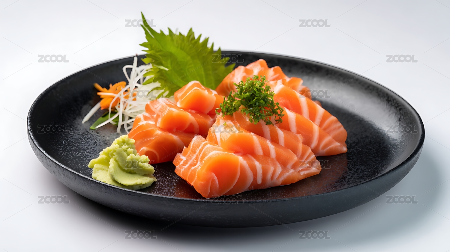 白盘,生鱼片,芥末,酱油,美食,生鲜