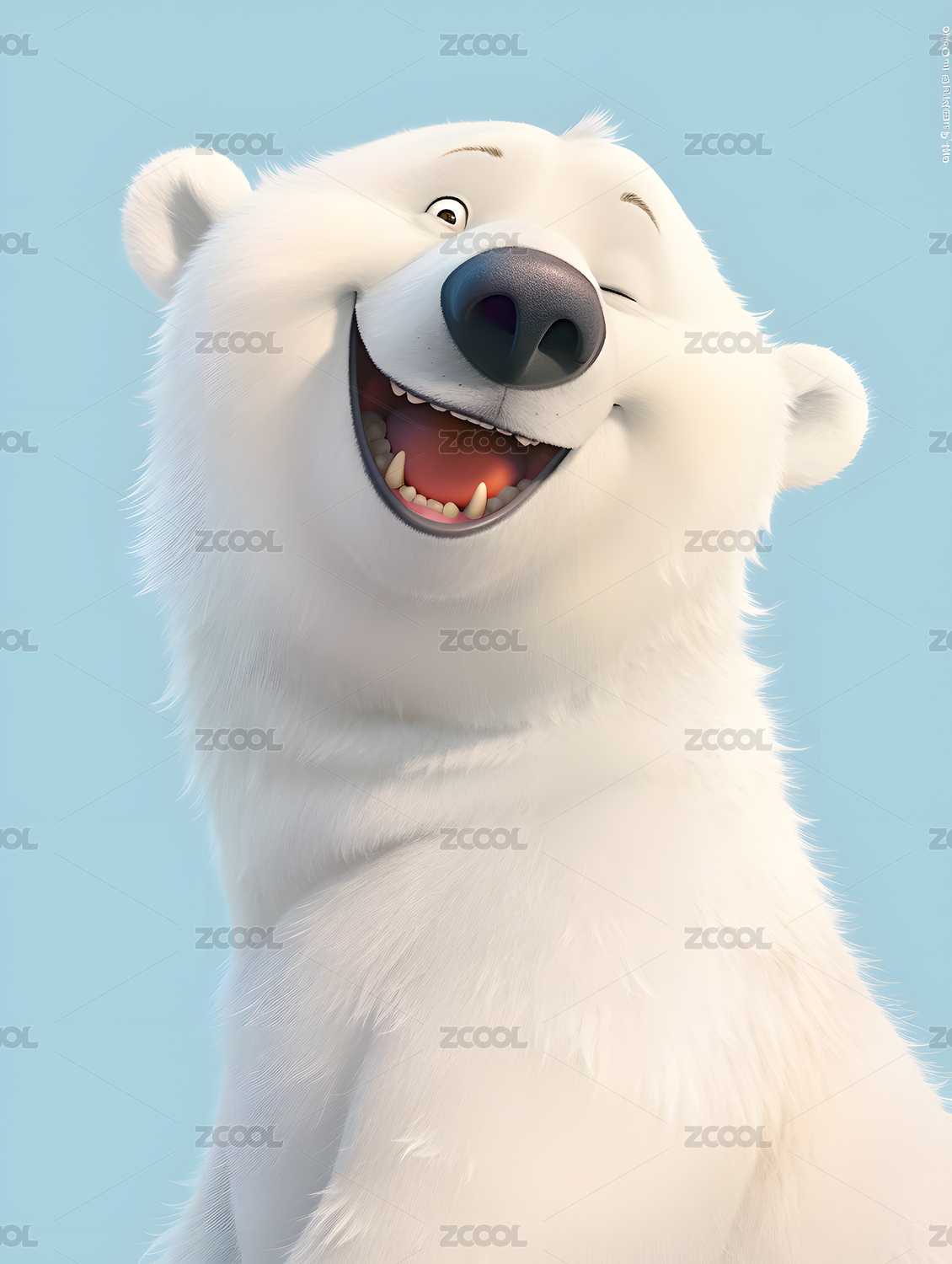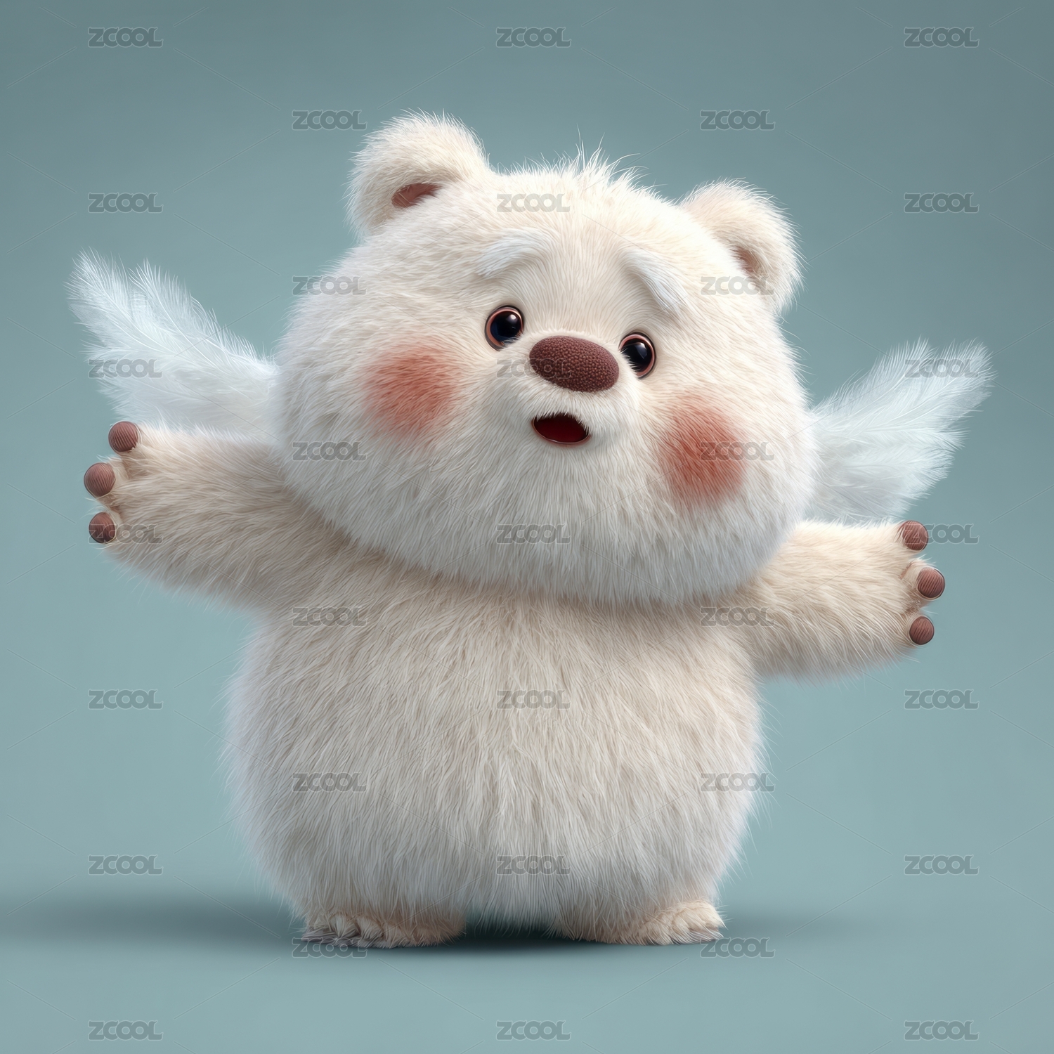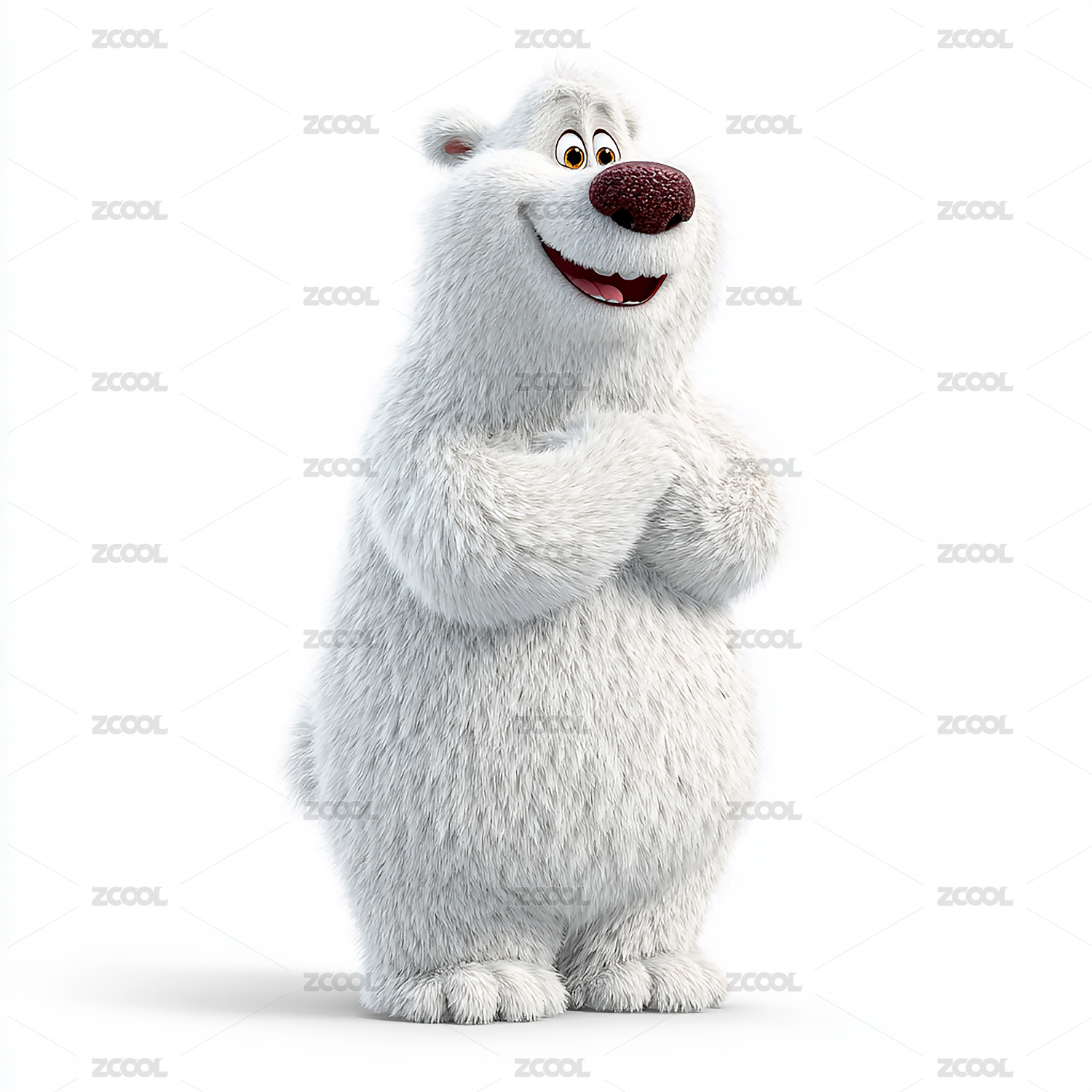 北极熊,卡通形象,站立,微笑,雪地,毛茸茸,双手合十,欢乐,动物