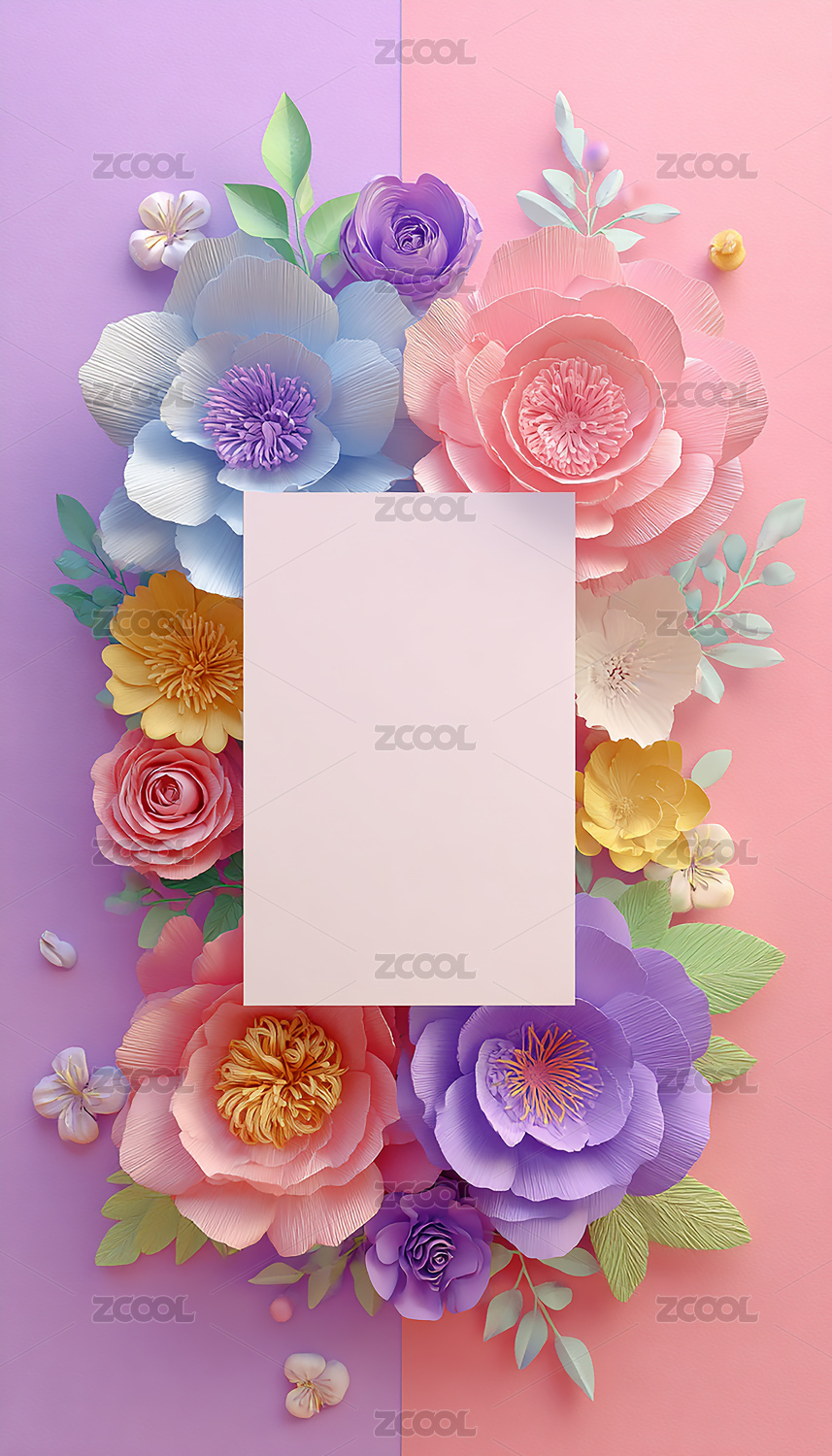 花朵,纸艺花,相框,装饰画,粉色,彩色,柔和,花卉,图案,艺术