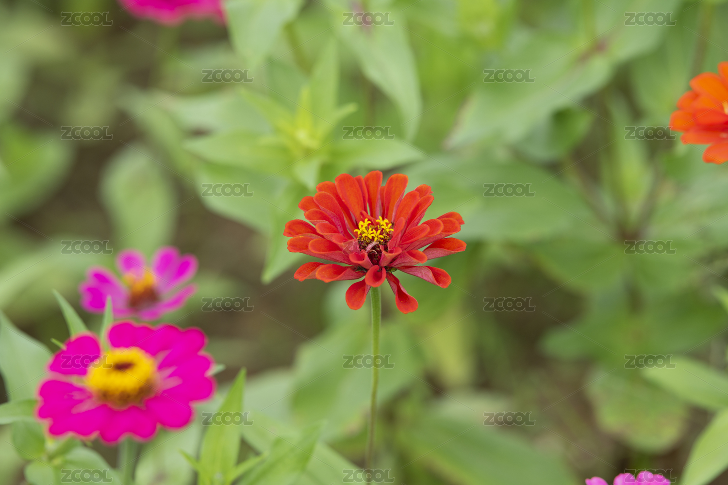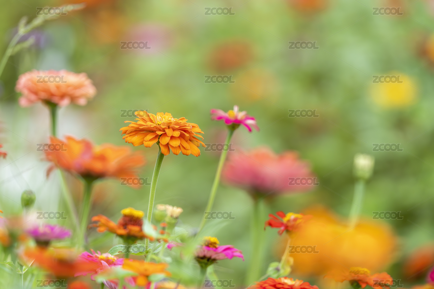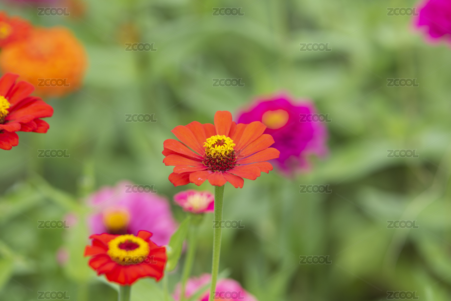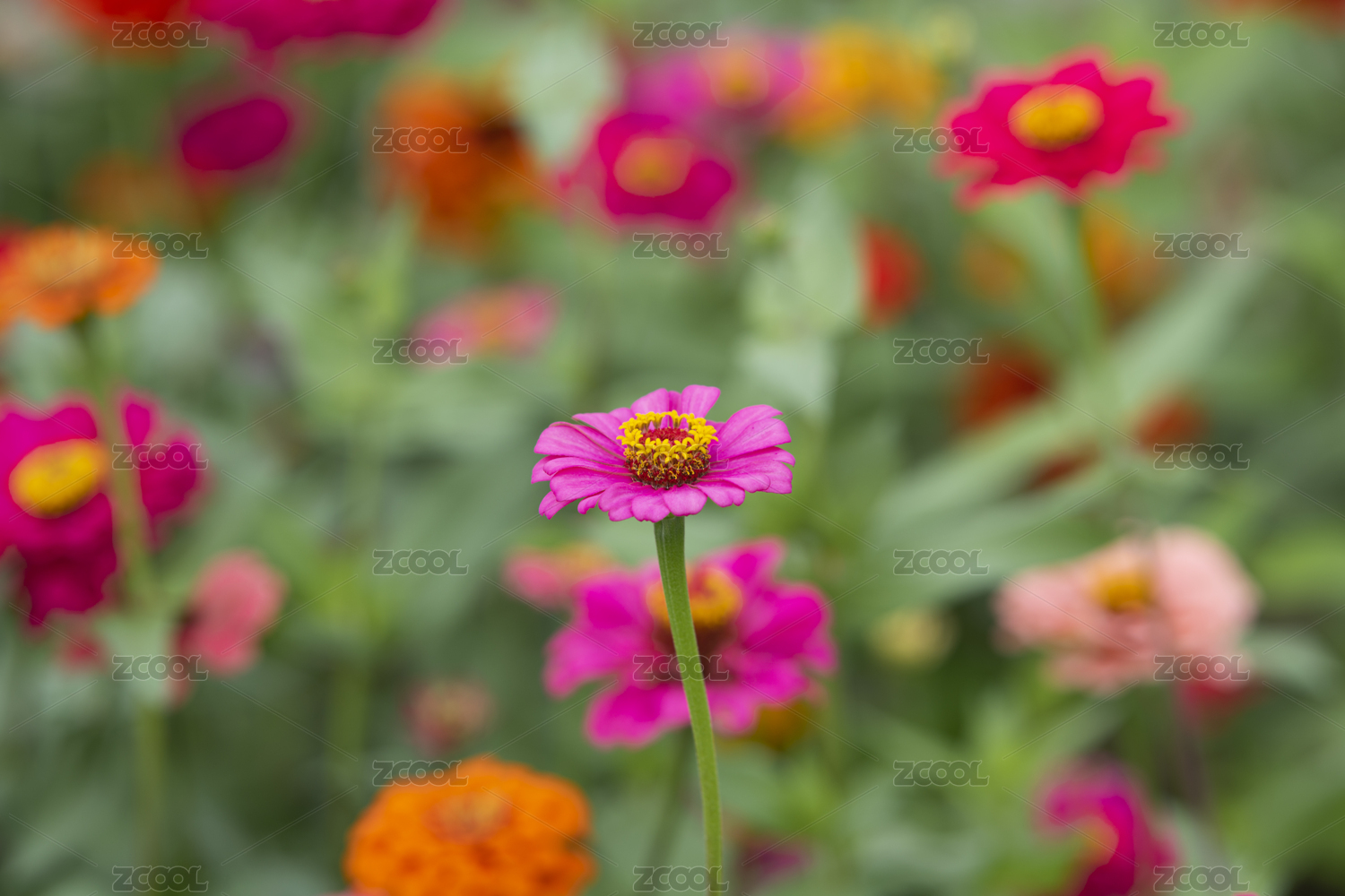 背景,黄色,花朵,绿色,自然,粉红色,橙色,百日草,植物,生机