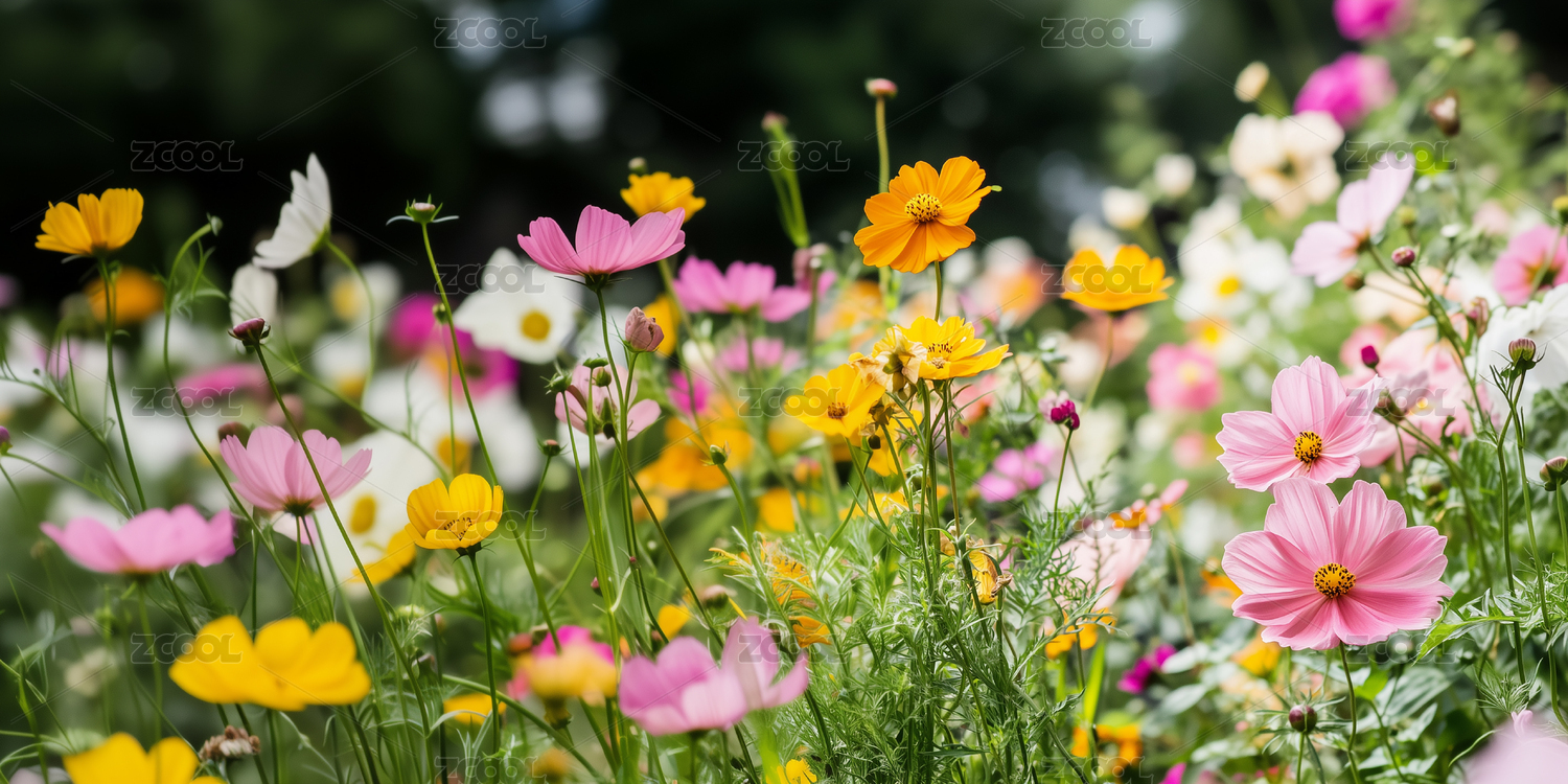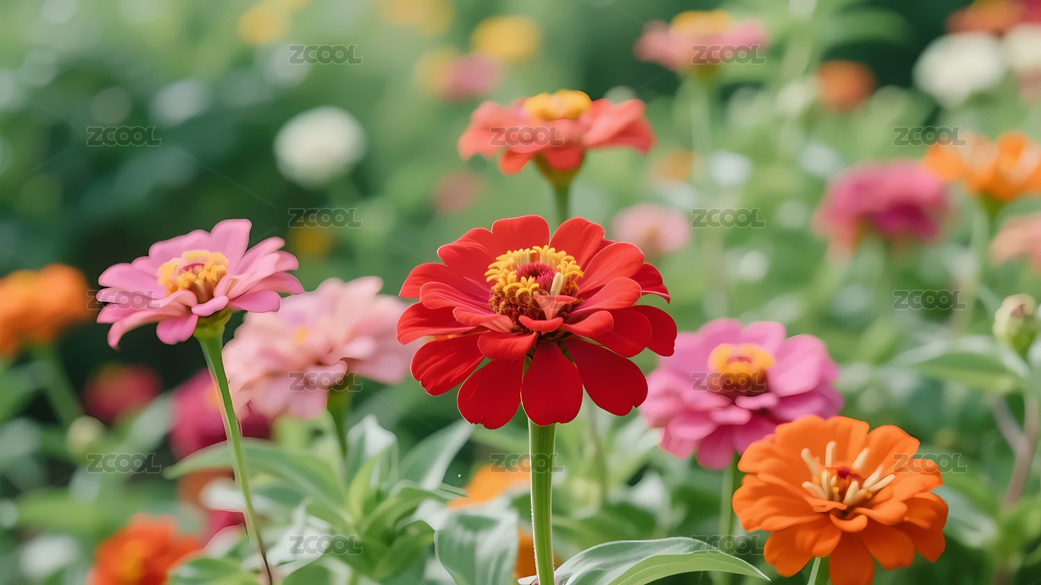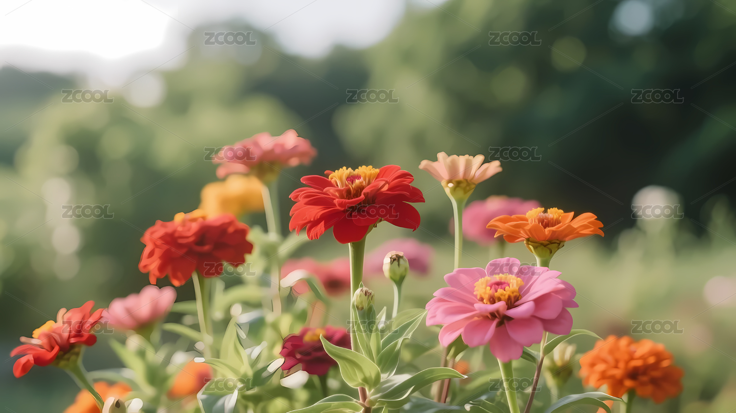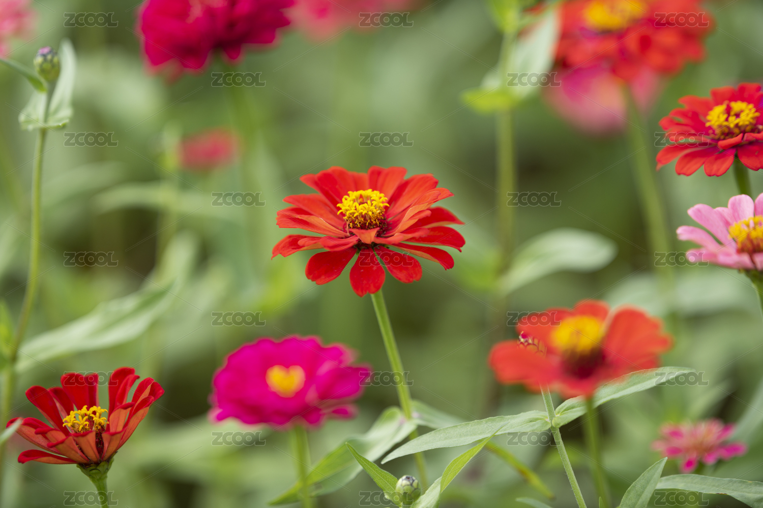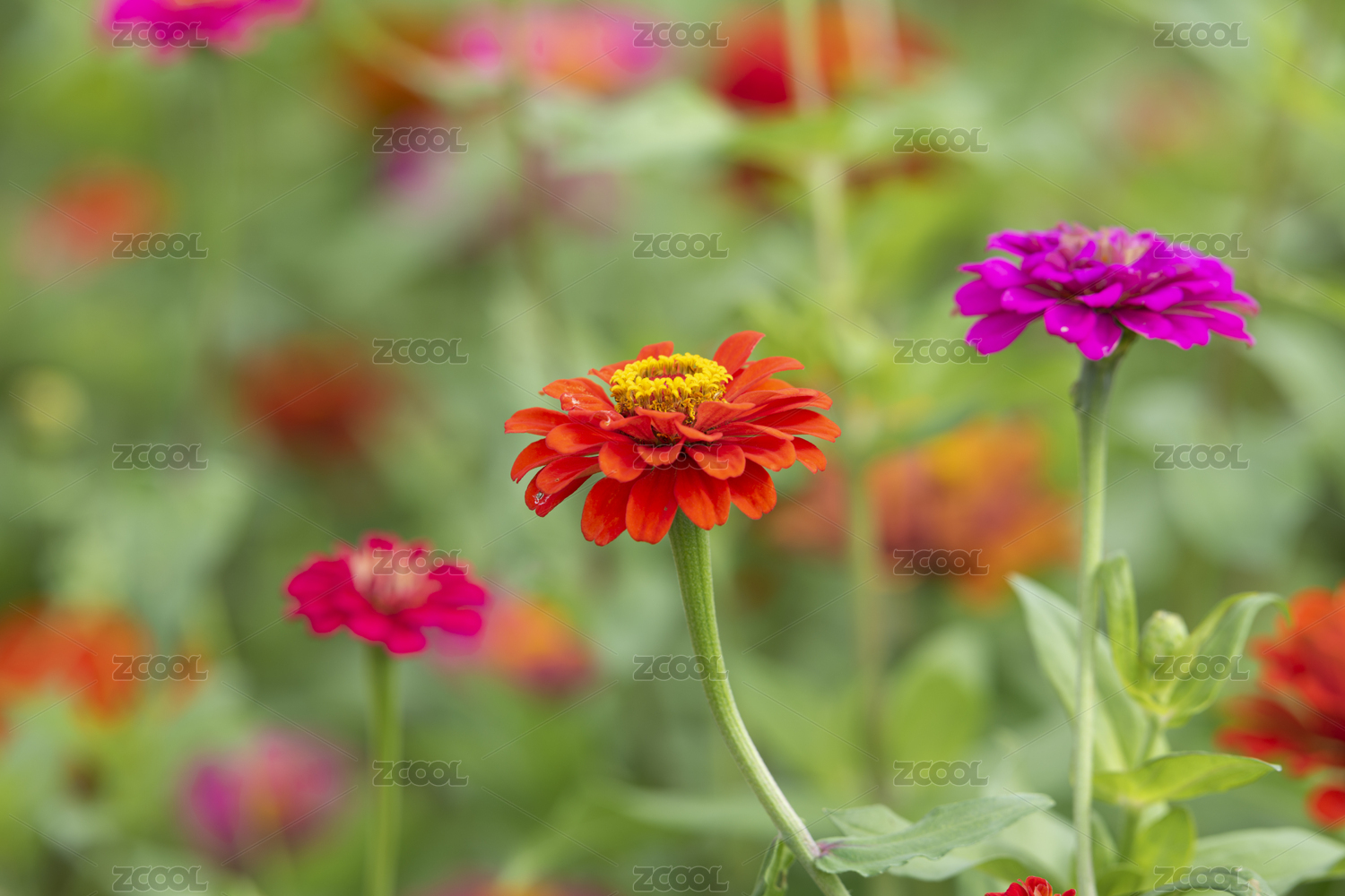 背景,黄色,花朵,绿色,自然,粉红色,橙色,百日草,植物,生机