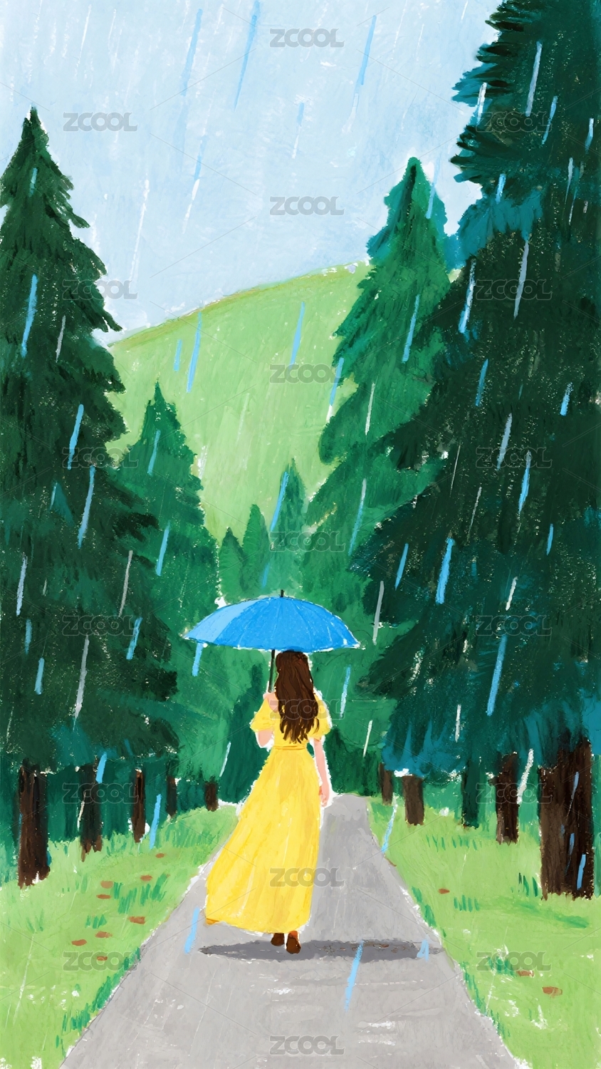 雨中漫步的女孩