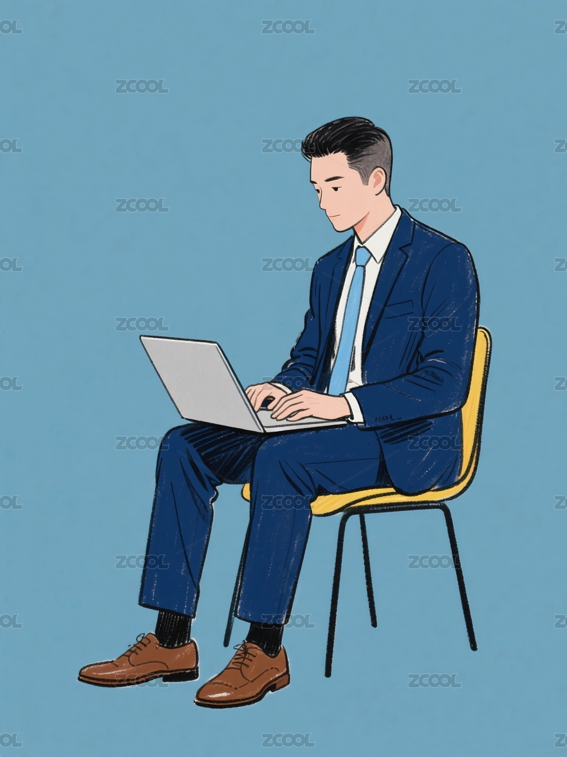蓝色,人物,现代,男人,西装,椅子,电脑,工作,办公,商务