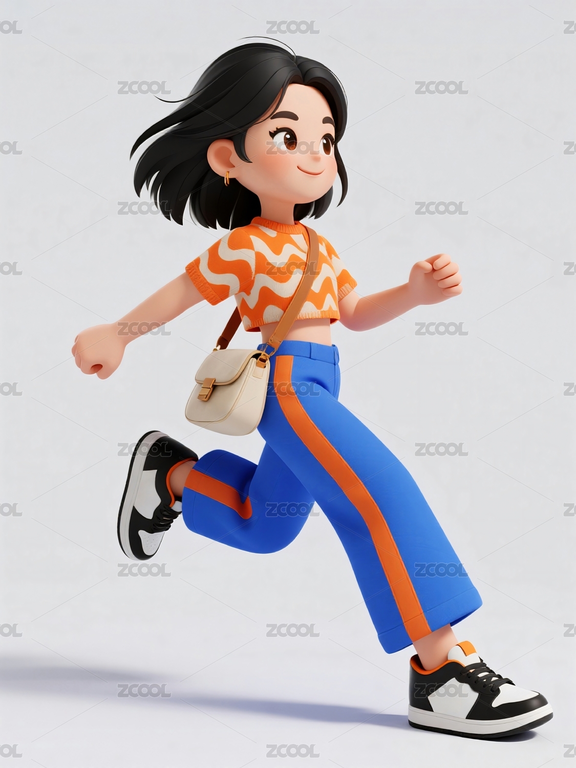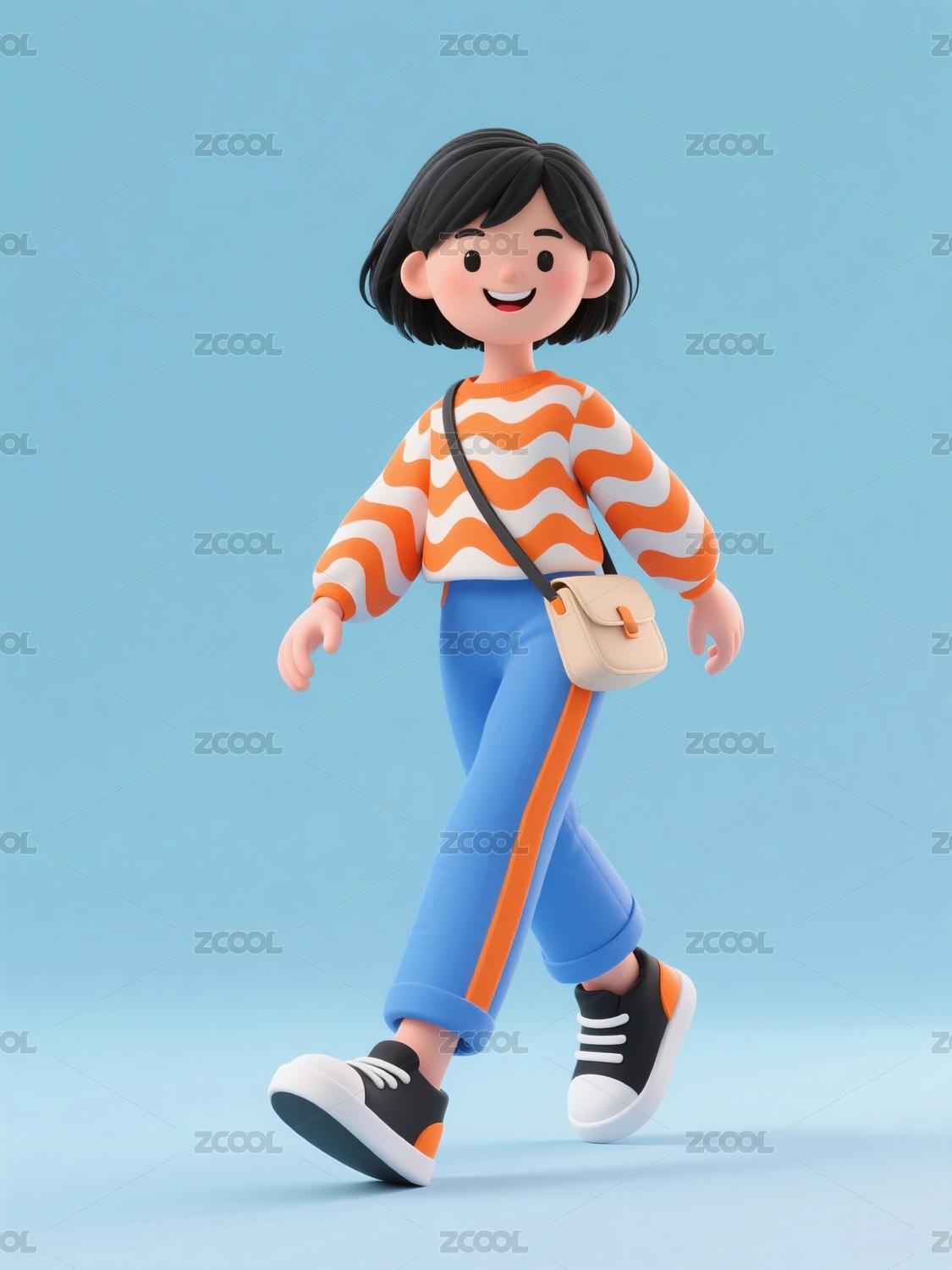 蓝色,行走,卡通,人物,运动,橙色,休闲,活力,年轻,可爱