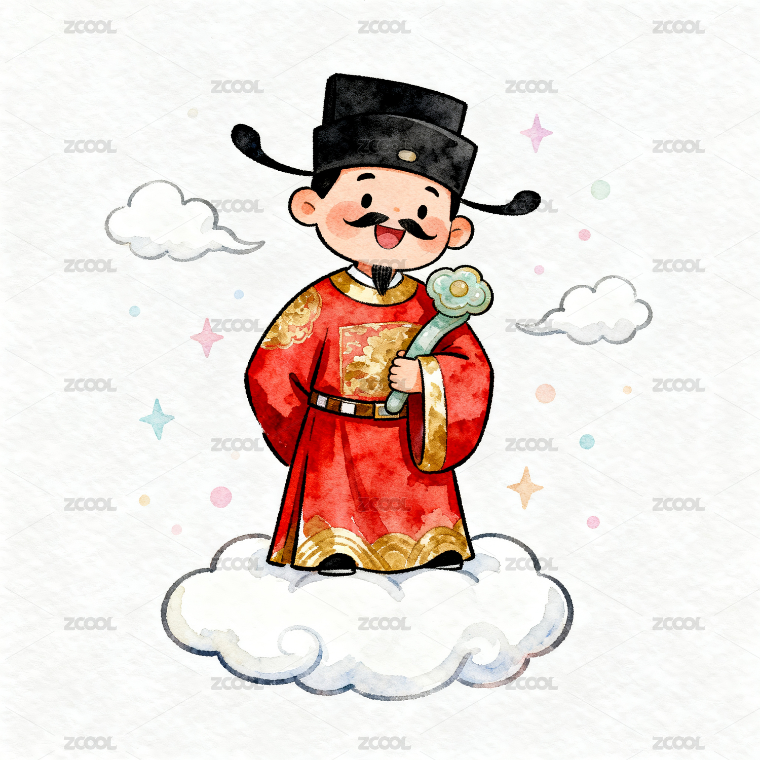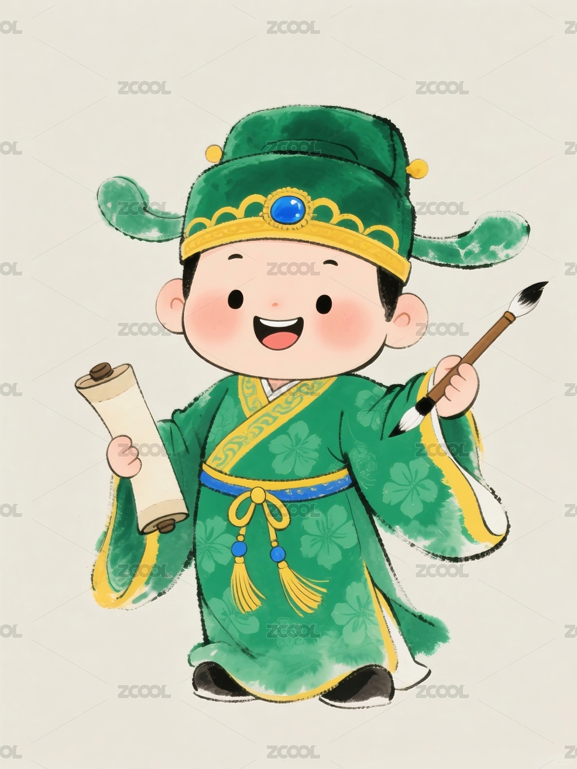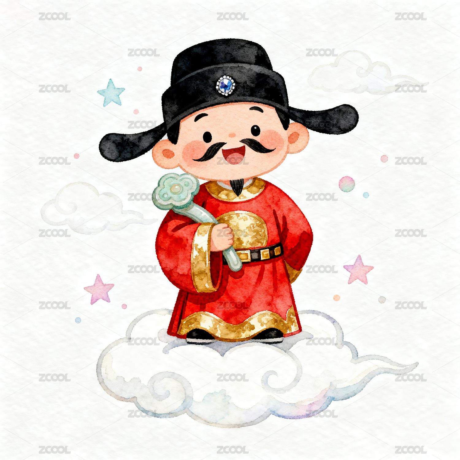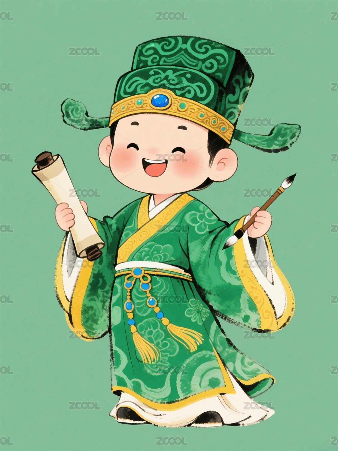 财神,吉祥,喜庆,卡通,笑容,喜悦,人物,传统,服饰,象征