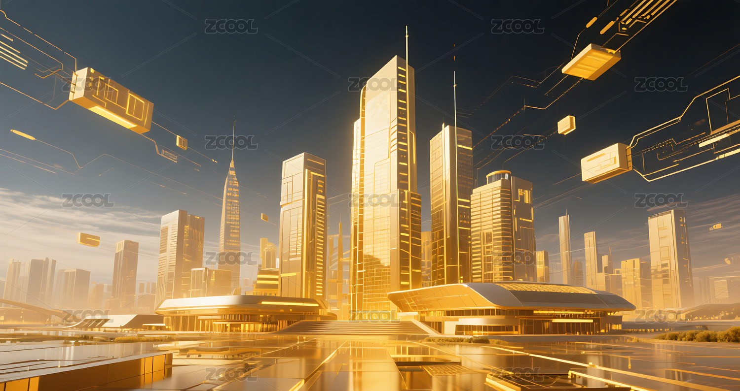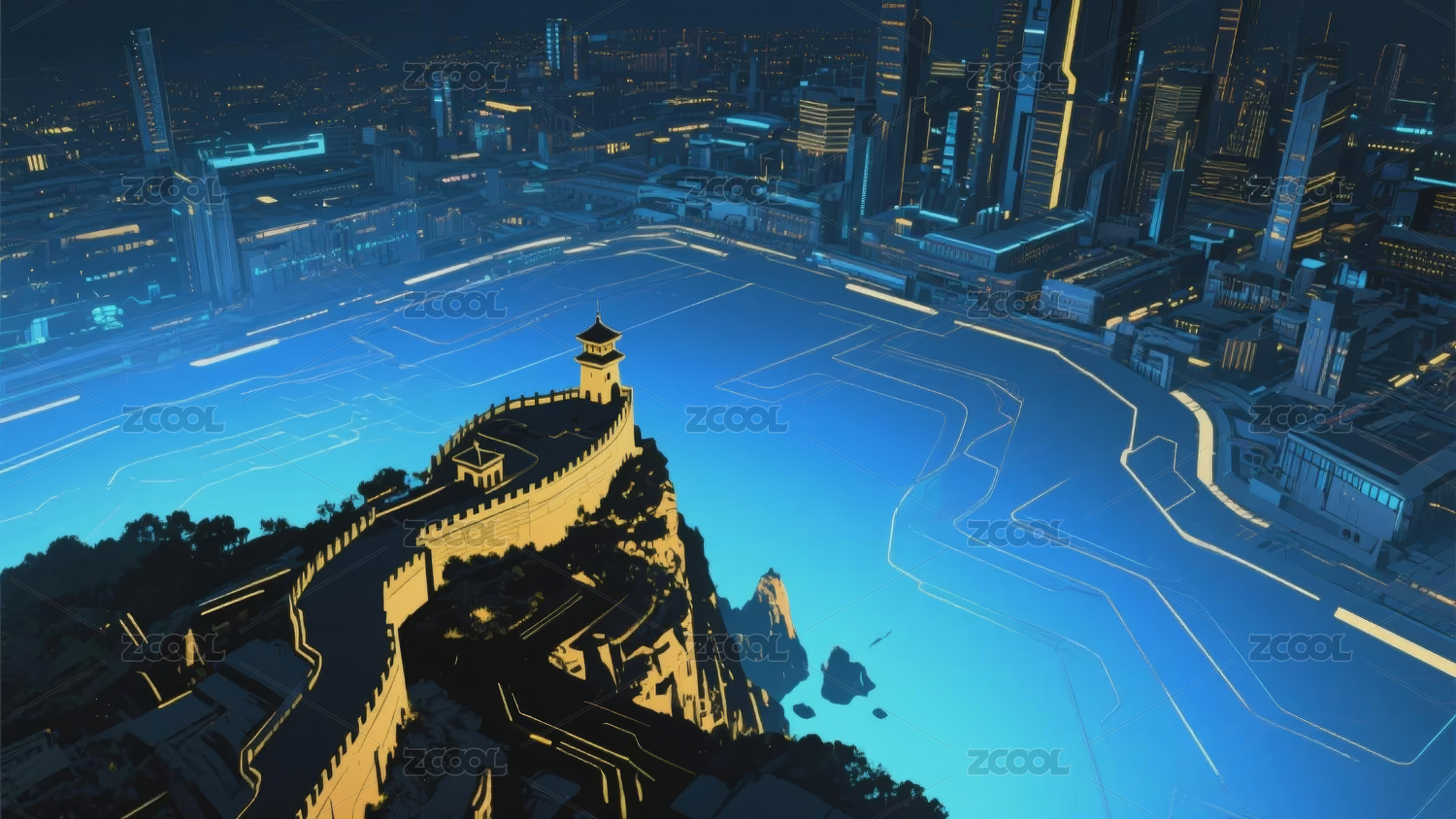 未来, 城市, 灯光, 建筑, 科技, 夜景, 高楼, 设计, 现代, 桥梁
