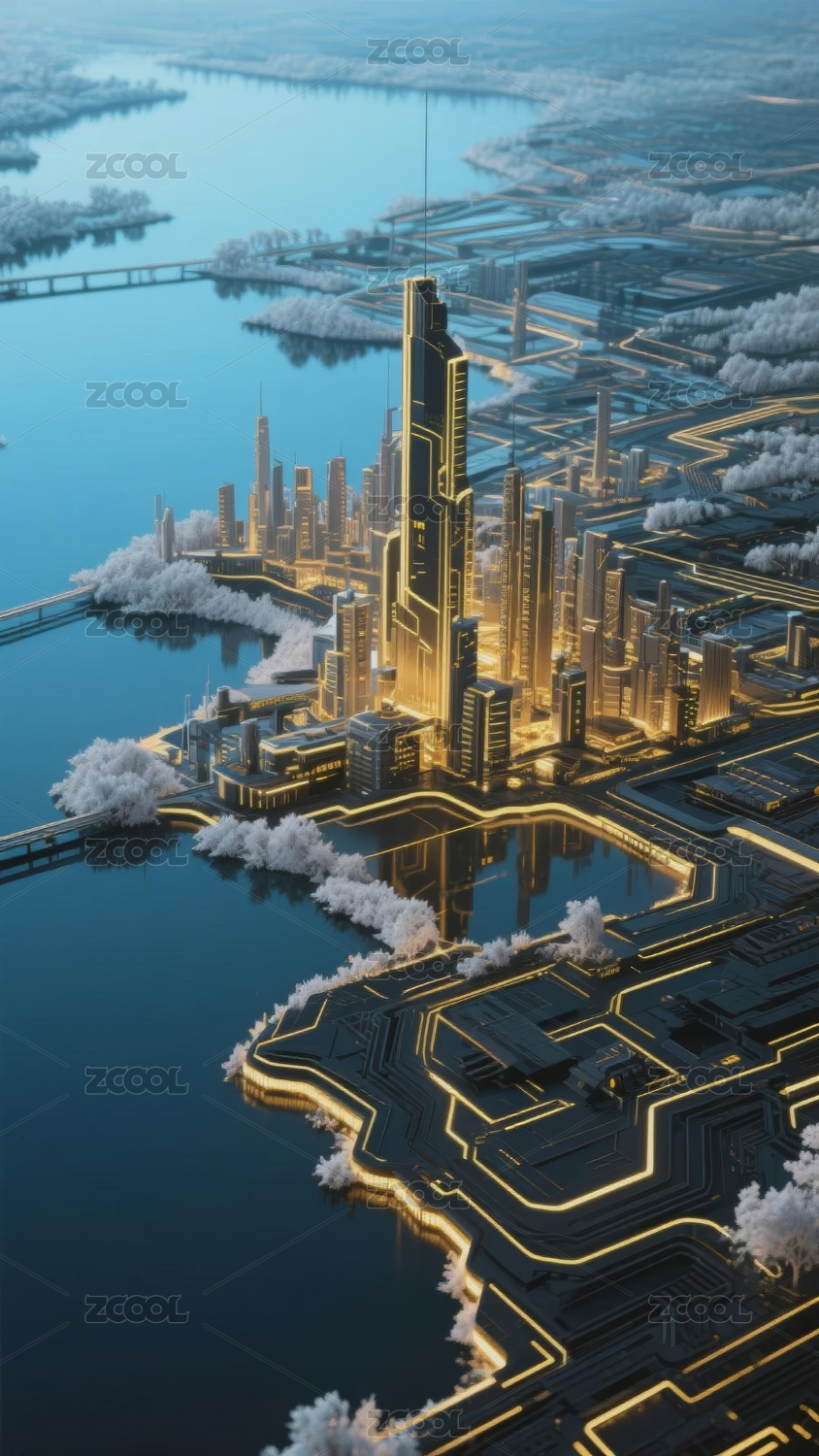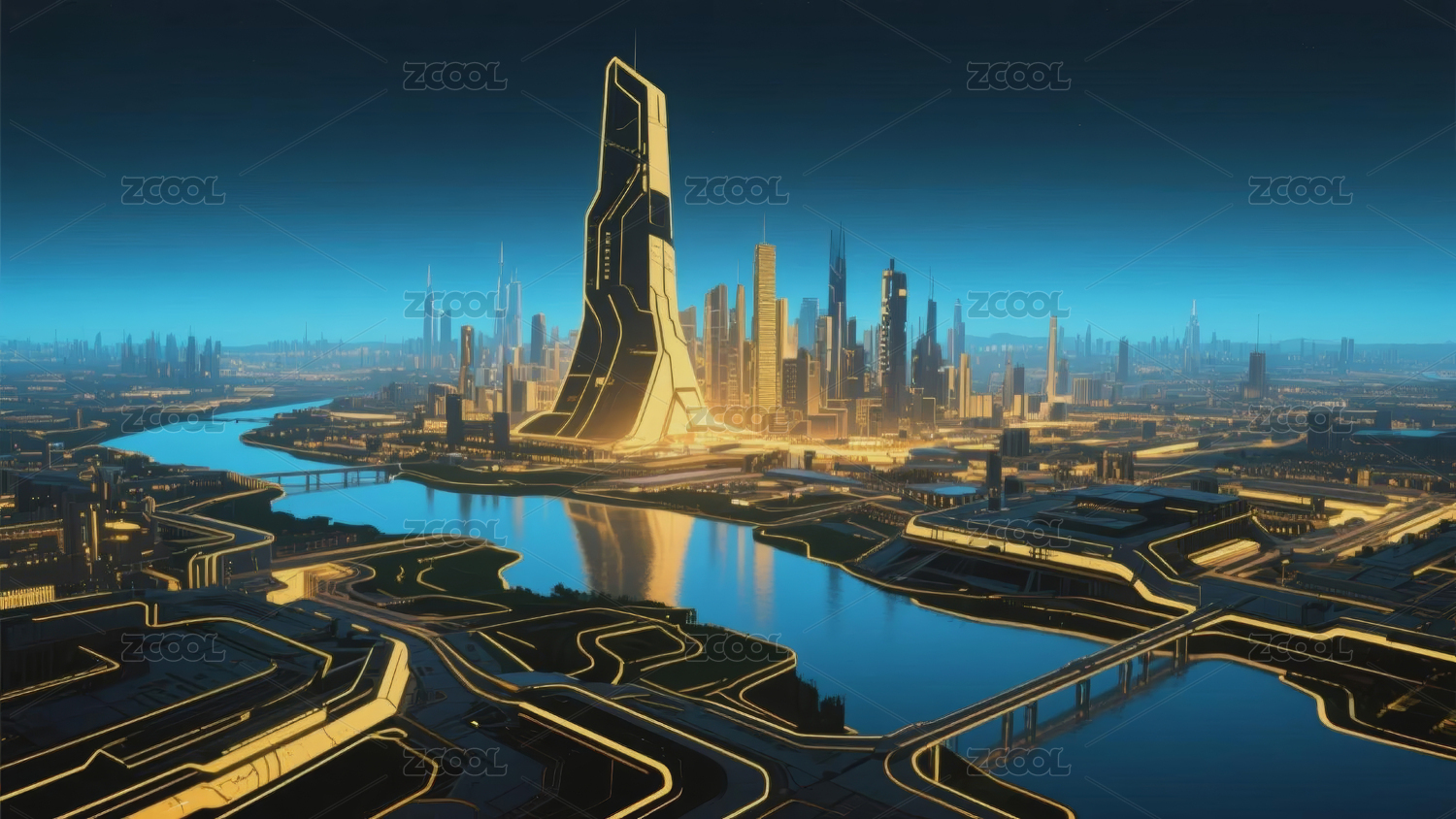 未来, 城市, 灯光, 建筑, 科技, 夜景, 高楼, 设计, 现代, 景观